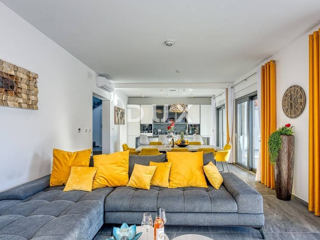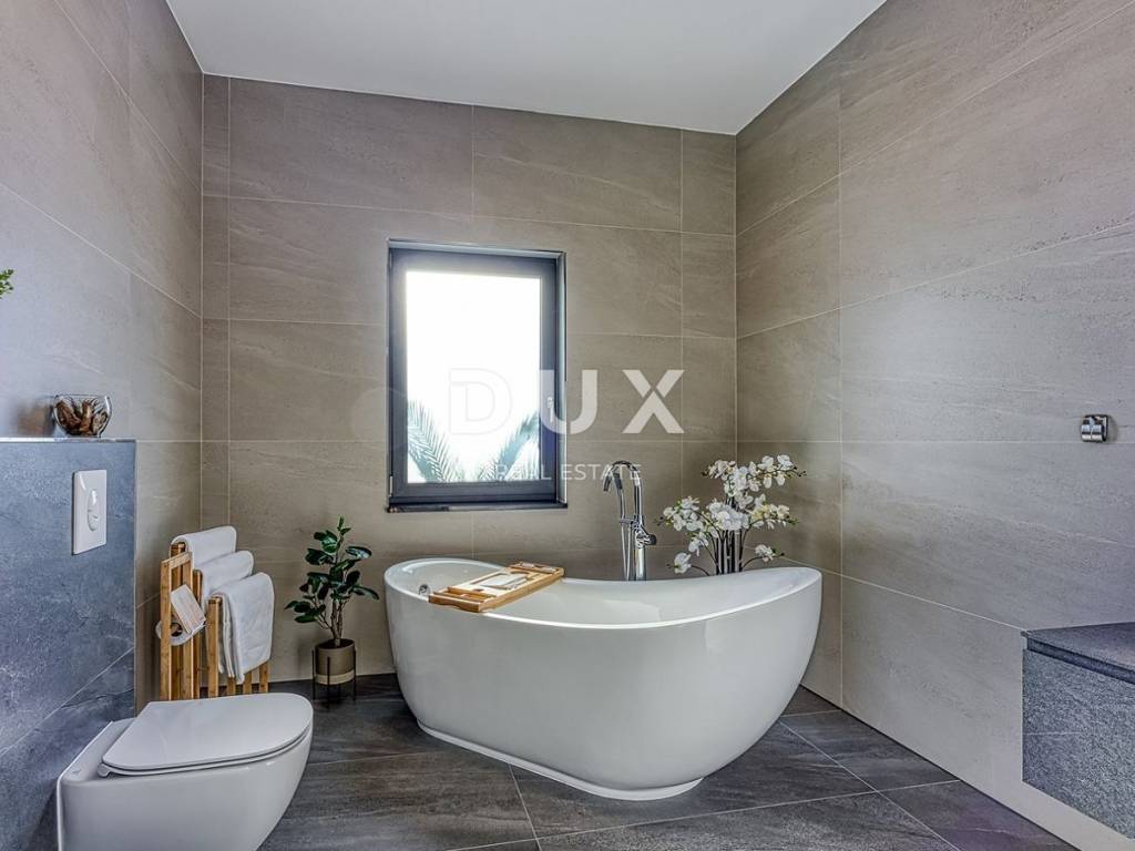 ISTRA, POREČ - Luksuzna dvojna kuća s bazenom, saunom i jacuzzijem, 260m2 U mirnom rezidencijalnom naselju u blizini Poreča, svega 1300 metara od mora, smjestila se moderno dizajnirana dvojna kuća građena 2023. godine. Spoj suvremene arhitekture i funkcionalnog rasporeda prostora čini ovu nekretninu idealnom za luksuzni turistički najam, ali i kao privatnu oazu za bijeg od svakodnevice. Ukupne površine od 260 m², kuća se prostire na tri etaže, a smještena je na parceli veličine 481 m². Već na prvi pogled osvaja pažljivo uređenim eksterijerom, privatnošću i modernim dizajnom koji odiše elegancijom. U prizemlju se nalazi prostrani dnevni dio otvorenog koncepta – kuhinja, blagovaonica i dnevni boravak skladno su povezani u jednu funkcionalnu cjelinu s izlazom na natkrivenu terasu i vrt. Prizemlje dodatno uključuje ulazni hodnik, gostinjski toalet i tehničku sobu/spremište. Na prvom katu nalaze se tri udobne spavaće sobe, svaka s vlastitom kupaonicom. Dvije sobe dijele natkrivenu terasu koja pruža pogled na zelenilo i okolinu. Posebnu vrijednost kući daje drugi kat, osmišljen kao prostor za opuštanje i rekreaciju. Jacuzzi, sauna, fitness oprema i luksuzna kupaonica sa samostojećom kadom pružaju iskustvo privatnog wellnessa. Uz sve to, nalazi se i velika terasa površine 52 m² – idealna za sunčanje, večernja druženja ili jednostavno uživanje u pogledu i tišini. Kuća je klimatizirana, a grijanje je osigurano putem podnog sustava spojenog na toplinsku pumpu. Također su izvedene instalacije za grijanje bazena, što omogućuje cjelogodišnje korištenje. PVC stolarija i moderni materijali dodatno pridonose kvaliteti gradnje i energetskoj učinkovitosti. Udaljenost od centra mjesta iznosi svega 500 metara, a svi ključni sadržaji – trgovine, restorani, šetnice i plaže – lako su dostupni pješice ili biciklom. Ova nekretnina predstavlja savršen spoj modernog načina života i mediteranskog ugođaja. Bilo da tražite investicijsku priliku s visokim turističkim potencijalom ili privatno utočište za odmor i uživanje, ova kuća nudi sve – stil, udobnost, sadržaj i odličnu lokaciju. Poštovani potencijalni kupci, drago nam je što pokazujete interes za nekretnine iz naše ponude. Za više informacija i dogovor u vezi s razgledom nekretnine slobodno nas kontaktirajte. Razgledavanje nekretnine moguće je isključivo uz potpis ugovora o posredovanju u prometu nekretnina. Agencijska provizija se naplaćuje u skladu s Općim uvjetima poslovanja. https://www.dux-nekretnine.hr/opci-uvjeti-poslovanja ID KOD AGENCIJE: 42376 Arijana Traub Agent s licencom Mob: +385 91 267 1662 Tel: +385 91 480 8808 E-mail: arijana@dux-nekretnine.hr www.dux-opatija.com