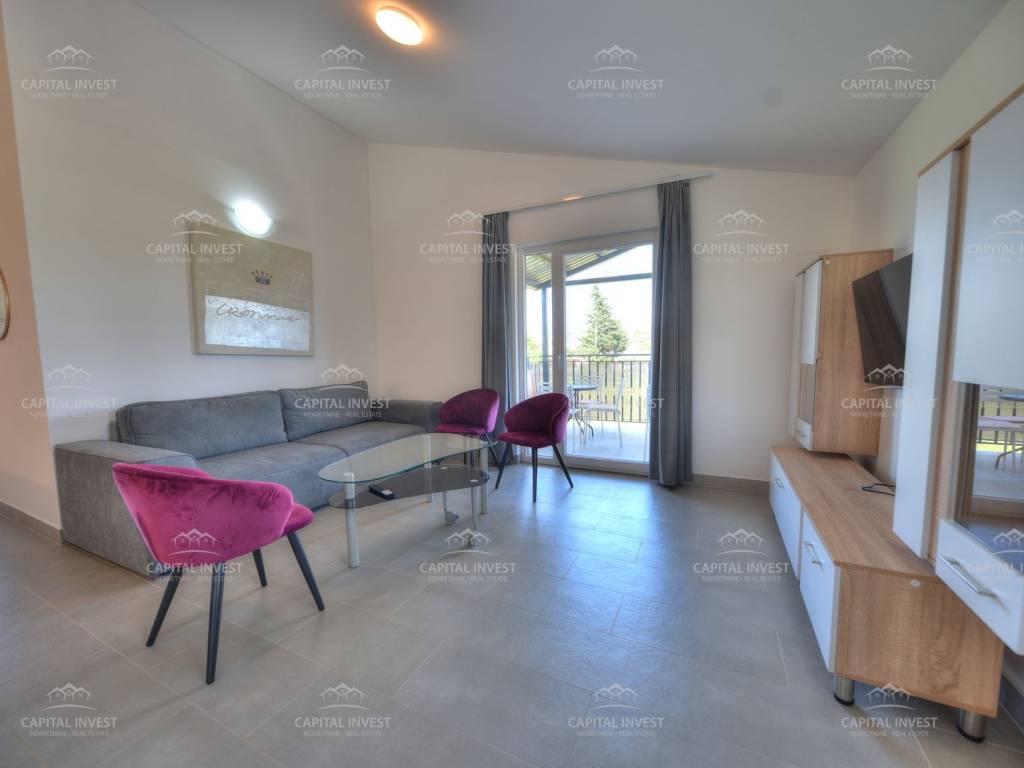 Stan se sastoji od dvije spavaće sobe te dodatnog prostora za dnevni boravak, što omogućuje funkcionalan raspored i ugodan boravak. Orijentacija prema jugu osigurava obilje prirodnog svjetla tijekom cijelog dana te ugodan pogled na okolinu.