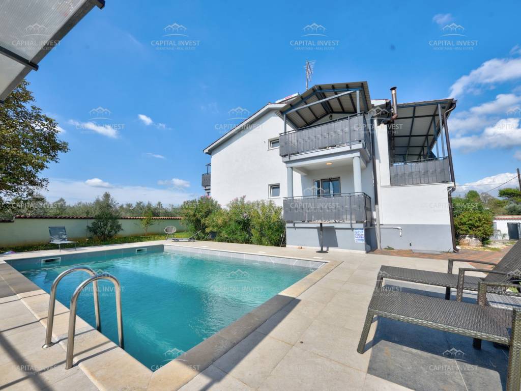 Nekretnina raspolaže terasom, balkonom i dvorištem, što pruža dodatni prostor za opuštanje i druženje na otvorenom. Na raspolaganju su natkriveno parkiralište, vrt, bazen te roštilj, čime se dodatno podiže kvaliteta života.