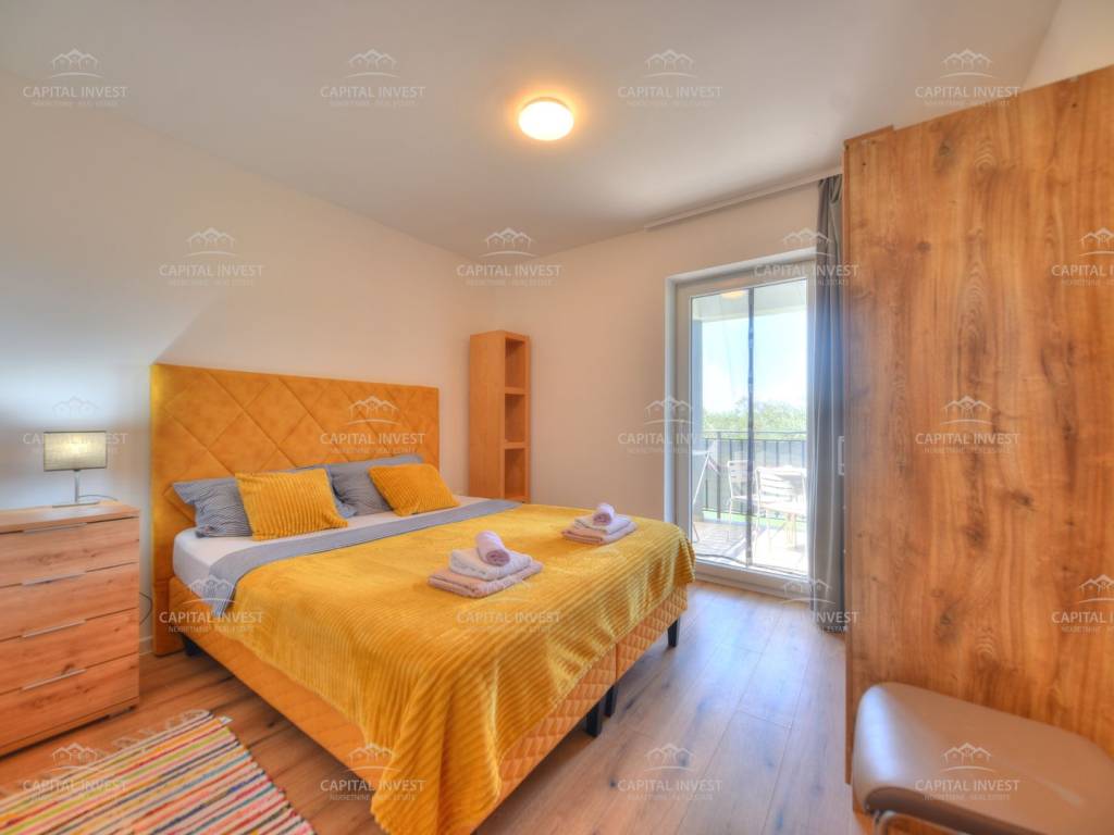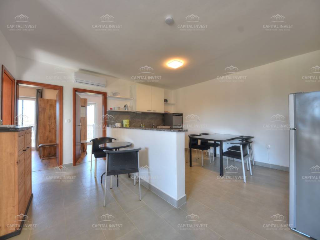 Stan se sastoji od dvije spavaće sobe te je orijentiran prema jugu, što osigurava obilje prirodne svjetlosti tijekom cijelog dana. Ova nekretnina je adaptirana 2025. godine, što omogućuje novim vlasnicima uživanje u suvremenom i funkcionalnom prostoru. Unutrašnjost stana opremljena je kuhinjom s aparatima, TV-om, krevetom, radnim stolom, perilicom rublja i perilicom posuđa, što doprinosi udobnosti i praktičnosti svakodnevnog života.