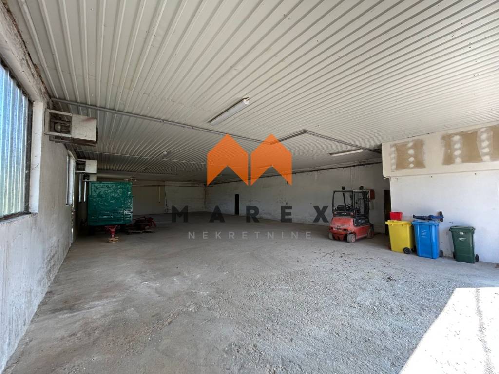 438m2 razdijeljeno je na 3 prostora, 280m2 prostora otvorenog tipa+ wc i kupaonica, 3 kancelarijske prostorije, visina prostora 3.7m, velika rolo podizna vrata širine 6m, termoizolirani stropovi