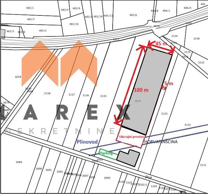 Parcela je djelomično obuhvaćena zaštitnim pojasom plinovoda, unutar kojeg nije dopuštena izgradnja u širini od 5 metara. Unatoč tome, površina od približno 16.500 m2 ostaje raspoloživa za izgradnju proizvodno-skladišnog objekta do 8.250 m2 tlocrtne površine prema kig. Preostali dio parcele pruža idealan prostor za organizaciju manipulativnih površina, poput parkirališta za osobna i teretna vozila, ili za uspostavu ukrcajno-iskrcajnog terminala te upravnu zgradu, ovisno o potrebama investitora.