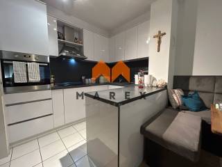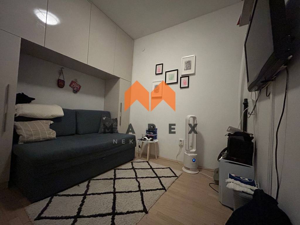Ovaj prostrani stan nudi udobnost i funkcionalan raspored s jednom spavaćom sobom, jednom pomoćnom sobom koja se može koristiti kao spavaća soba(ili srušiti zid od knaufa i napraviti jednu veliku spavaću) i dnevnim boravkom. Uz to, stan je opremljen kuhinjom s aparatima i kupaonicom što ga čini idealnim za obitelj ili parove. Dnevni boravak i spavaća soba imaju izlaz na terasu.