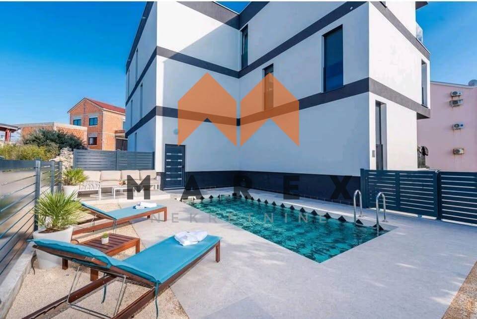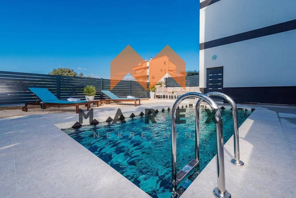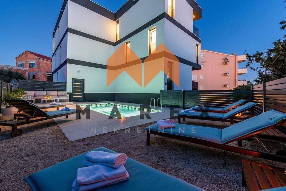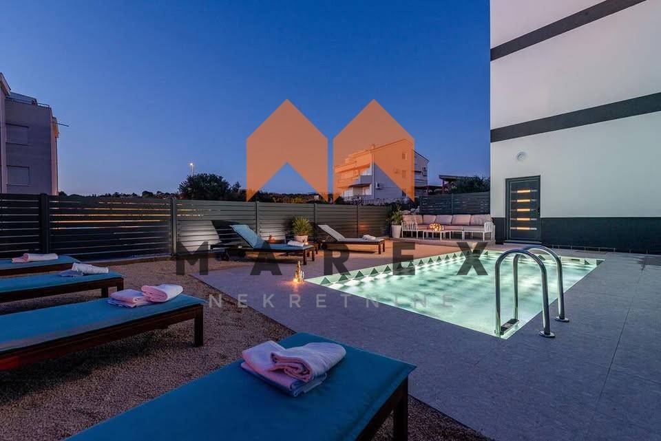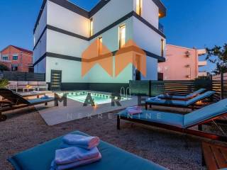 Vanjski prostor uključuje lođu i dvorište, savršene za opuštanje i uživanje u toplim ljetnim večerima. Na raspolaganju je i bazen, što dodatno doprinosi luksuznom doživljaju boravka.