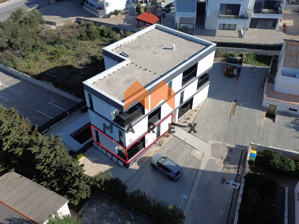 Ovaj moderni apartman izgrađen 2020. godine nalazi se u mirnoj i sunčanoj lokaciji u Novalji, savršenoj destinaciji za odmor i rekreaciju. Smješten na prizemlju dvoetažne zgrade, apartman nudi lijep pogled i uređen okoliš, idealan za bijeg od svakodnevnog stresa.