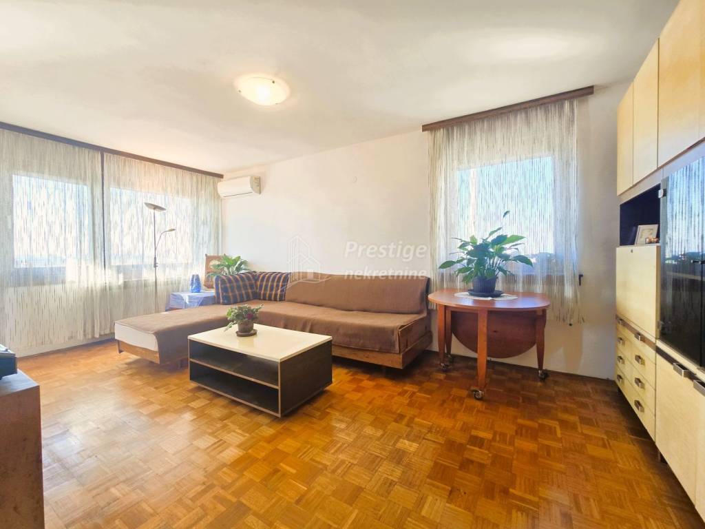 Na prodaju je lijep i prostran stan smješten na devetom katu nebodera na atraktivnoj lokaciji na Trešnjevci, u neposrednoj blizini Doma sportova. Stan se sastoji od funkcionalnog predsoblja, velikog dnevnog boravka s izlazom na loggiu koja pruža otvoreni pogled prema jugu, kuhinje s blagovaonicom, dvije udobne spavaće sobe, kupaonice, odvojenog WC-a te praktične ostave.