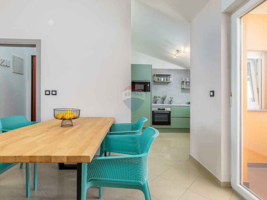 Kompletno renoviran i opremljen kvalitetnim namještajem,stan je odlična investicija za svakoga ko želi lokacijiu u blizini mora,u mirnom naselju bez gužve a istovremeno u blizini svih sadržaje koje nudi Fažana.