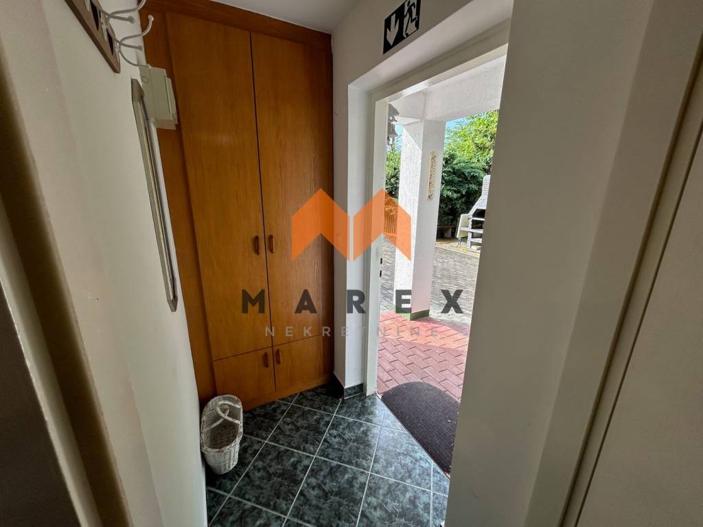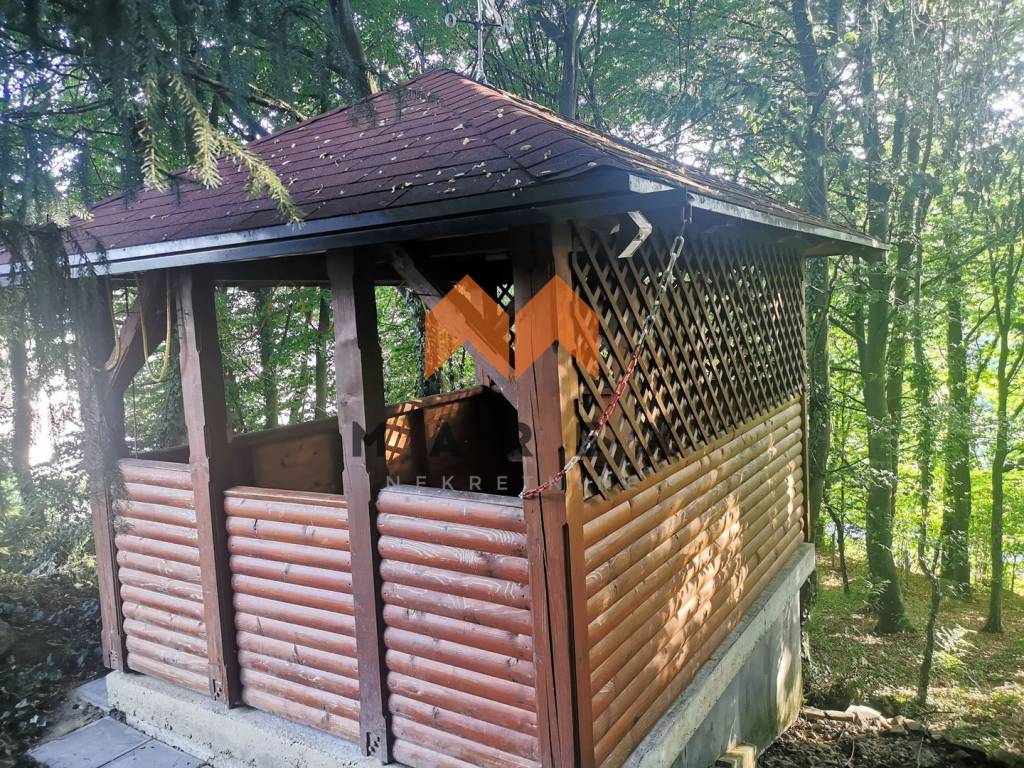 U dvorištu ima roštilj, natkrivena terasa, sjenica, jedan dio parcele je šuma, a jedan dio zelena površina sa voćkama.