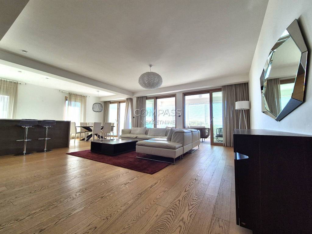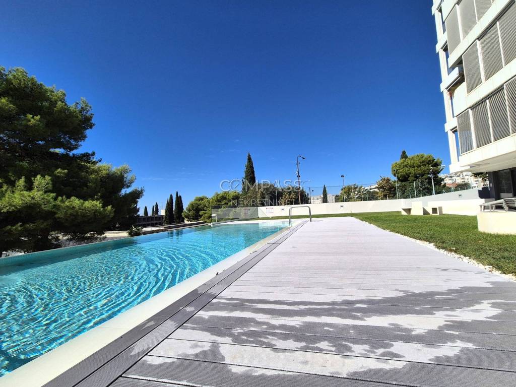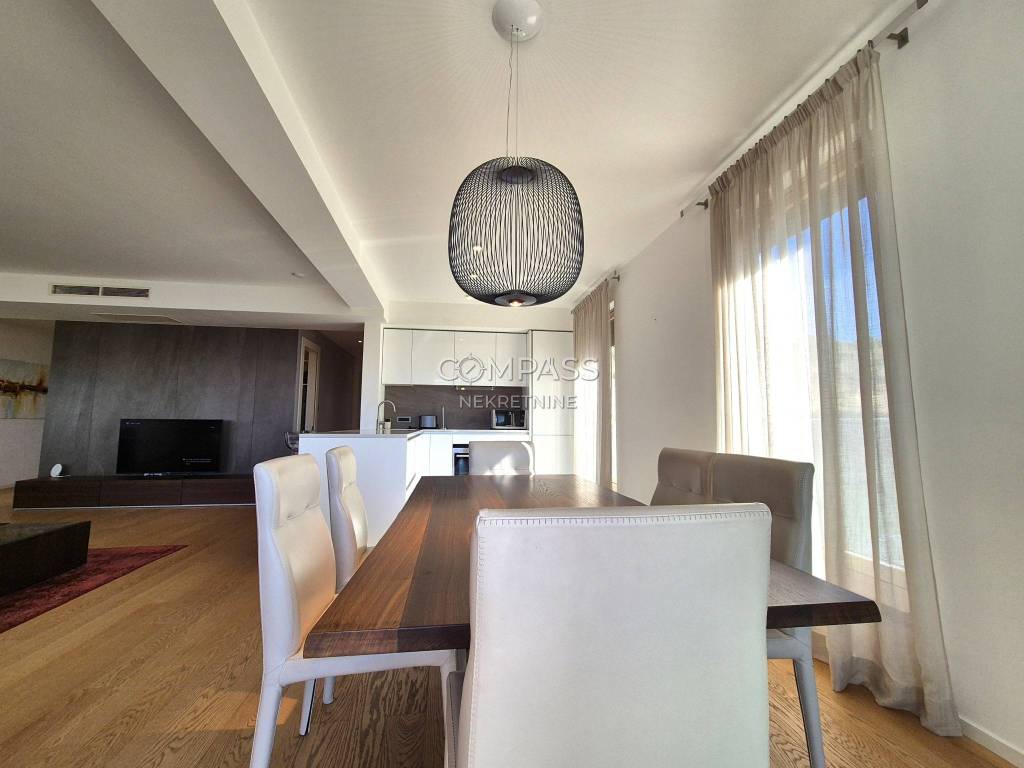 Posredujemo u najmu prekrasnog, luksuznog stana u novogradnji na Duilovu, mirnom i elitnom dijelu Splita. Stan se prostire na 160 m² te obuhvaća tri spavaće sobe, dvije kupaonice, dodatni toalet, hodnik i prostrani dnevni dio otvorenog koncepta s kuhinjom, blagovaonicom i dnevnim boravkom, koji vodi na veliku terasu s pogledom na more. Svaka prostorija opremljena je klimom, a zgrada nudi recepciju, privatnu teretanu, bazen i wellness centar, što ovaj stan čini iznimno udobnim i luksuznim za život. U cijenu su uključene režije, a na raspolaganju je i garažno parkirno mjesto.