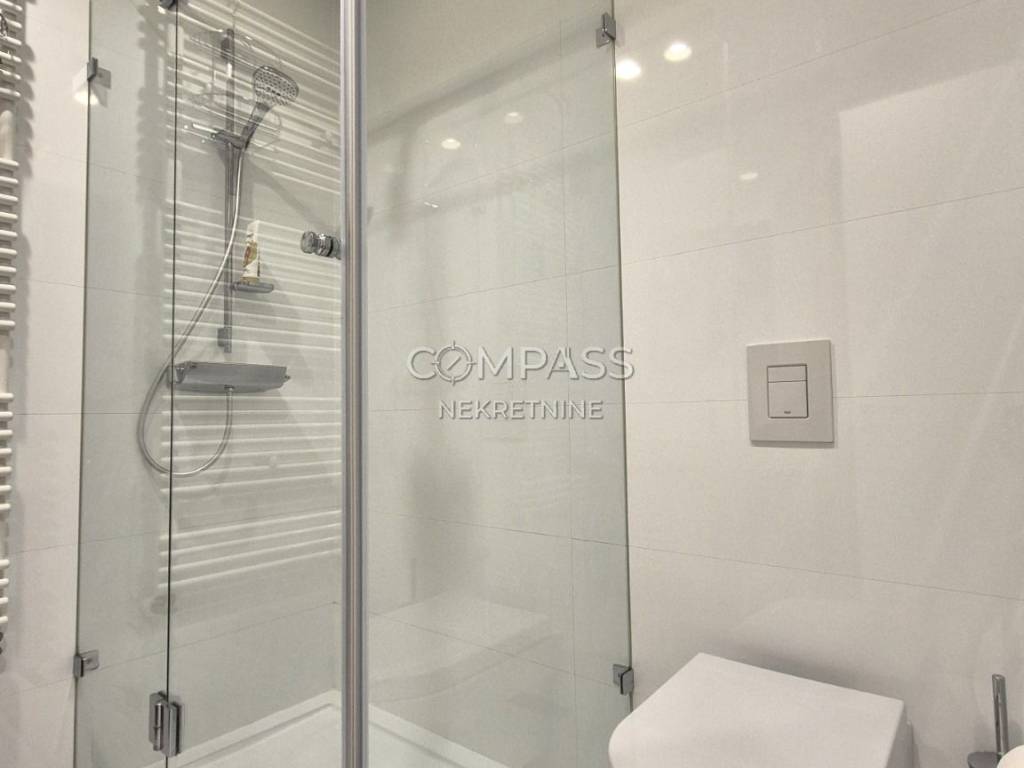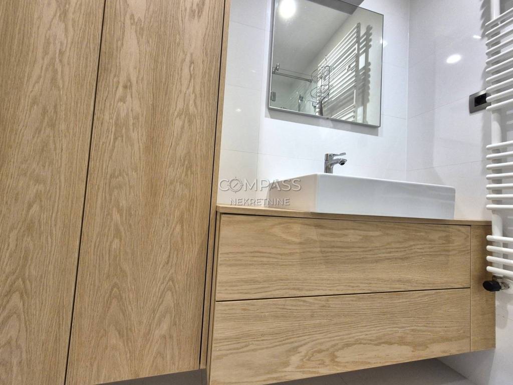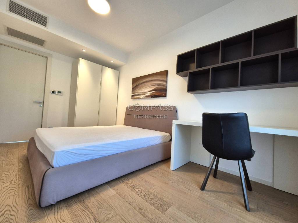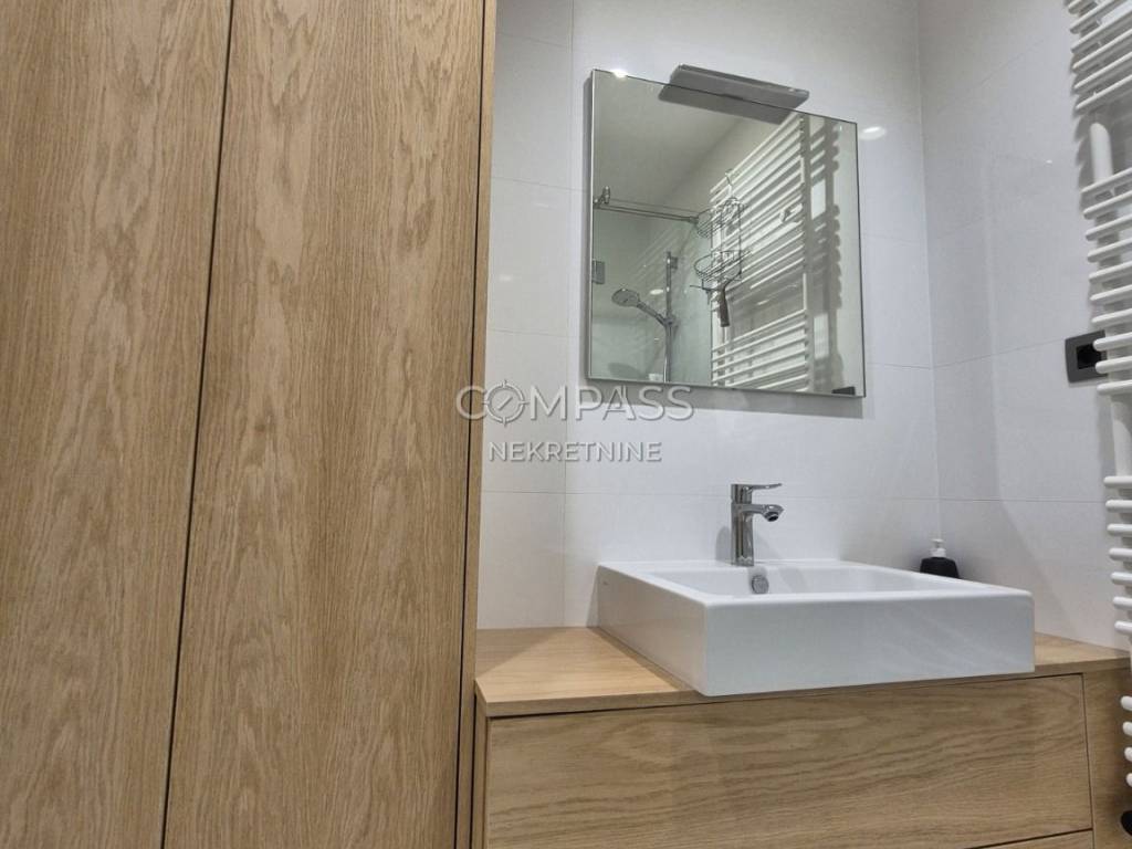 Stan je u potpunosti opremljen i namješten pomno odabranim komadima namještaja, obiluje prirodnim svjetlom te je idealan za one koji traže eleganciju, udobnost i mirnu lokaciju s dodatnim sadržajima.