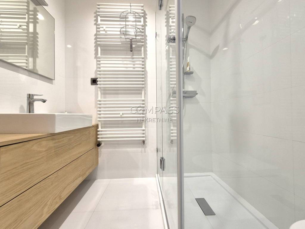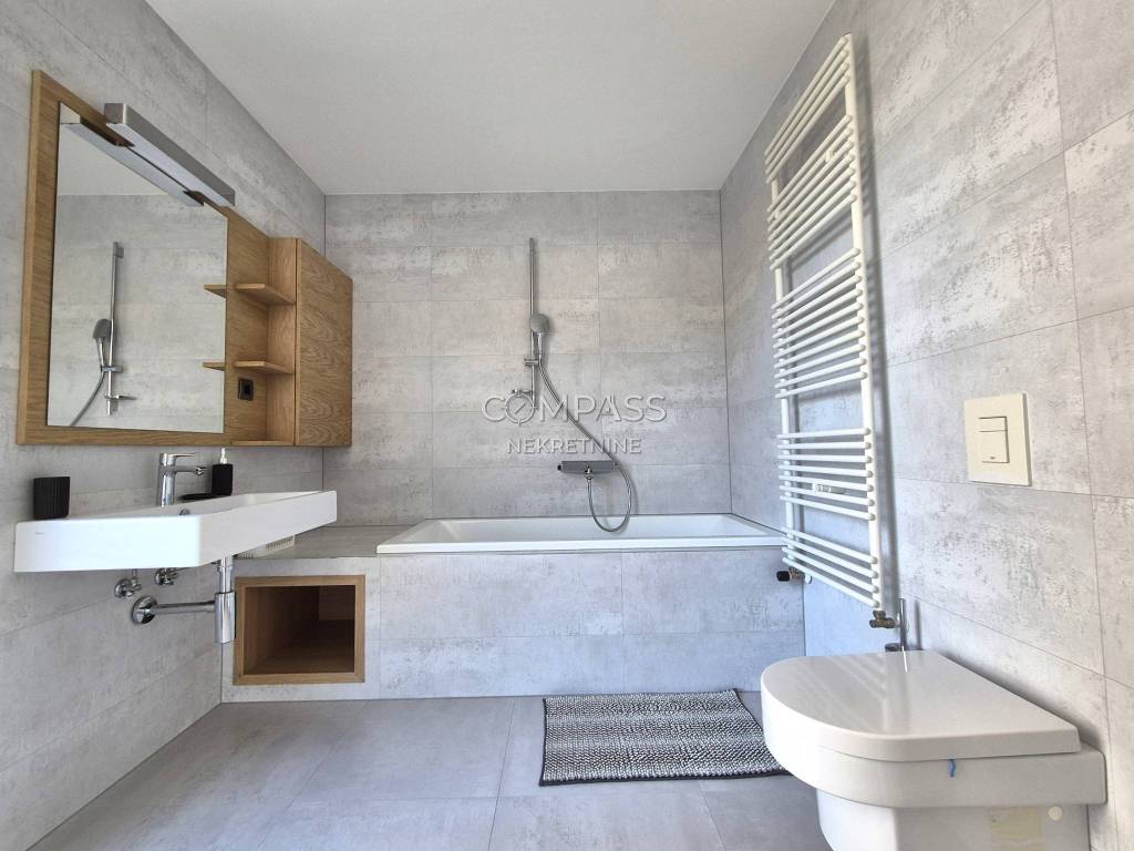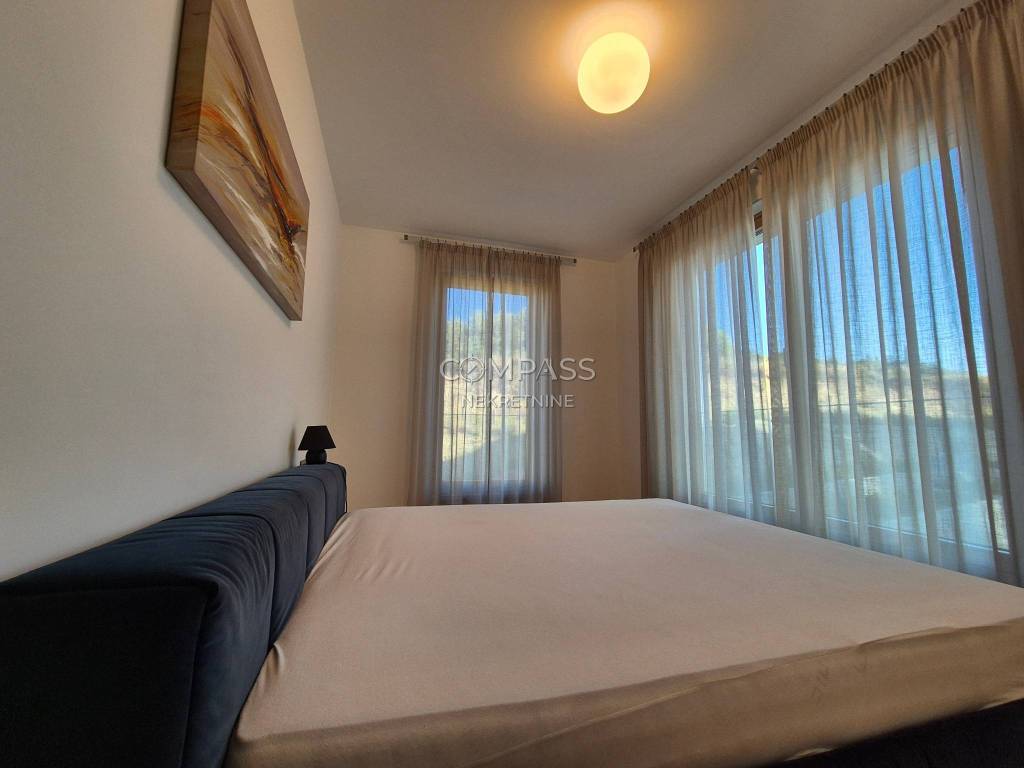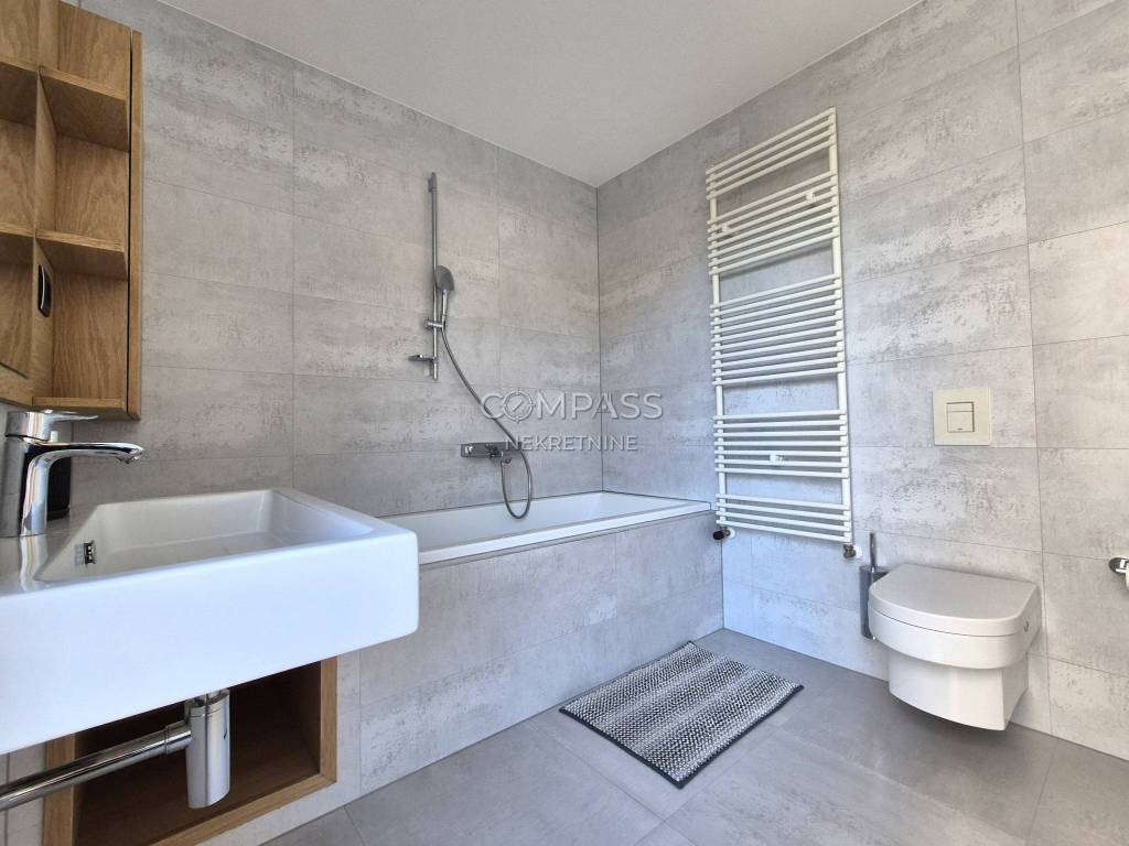 Stan je u potpunosti opremljen i namješten pomno odabranim komadima namještaja, obiluje prirodnim svjetlom te je idealan za one koji traže eleganciju, udobnost i mirnu lokaciju s dodatnim sadržajima.