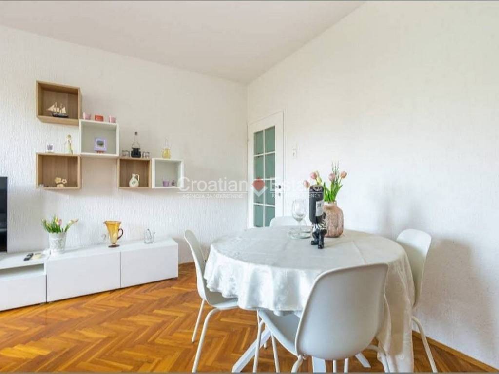 Iznajmljujemo dvosobni stan smješten na četvrtom katu zgrade bez lifta. Stambena površina stana iznosi 60m2, a sastoji se od kuhinje s blagovaonicom i dnevnim boravkom, dvije spavaće sobe, kupatila i lođe.