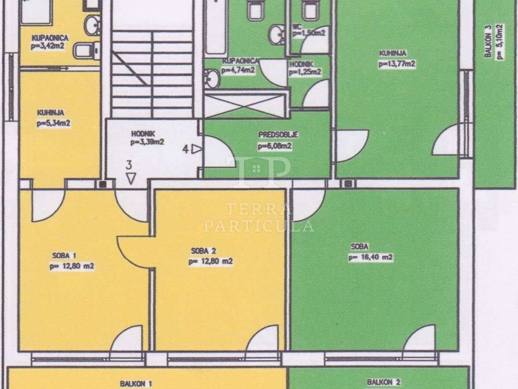 Stan oznake "S-04" na katu, koji se sastoji od predsoblja, hodnika, wc-a, kuhinje, kupaone, sobe, tlocrtne površine 43,74 m², i pripadaka: balkona 2 tlocrtne površine 4,82 m², balkon 3 tlocrtne površine 4,82 m², spremišta u suterenu tlocrtne površine 24,92 m², terase nad spremištem tlocrtne površine 32,01 m², potkrovlje 1 tlocrtne površine 54,41 m², potkrovlje 2 tlocrtne površine 18,60 m², potkrovlje 3, tlocrtne površine 10,75 m², potkrovlje 4, tlocrtne površine 3,58 m², balkona 1, tlocrtne površine 3,04 m² i balkona 2, tlocrtne površine 2,99 m² sveukupne korisne vrijednosti 153,44 m², sve označeno u etažnom elaboratu zelenom bojom.