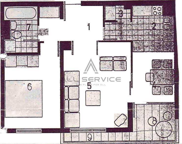 Sastoji se od: ulaznog hodnika, kupaone s kadom i toaletom, spavaće sobe, dnevnog boravka, blagovaone, kuhinje s ostavom i balkona s prekrasnim pogledom.