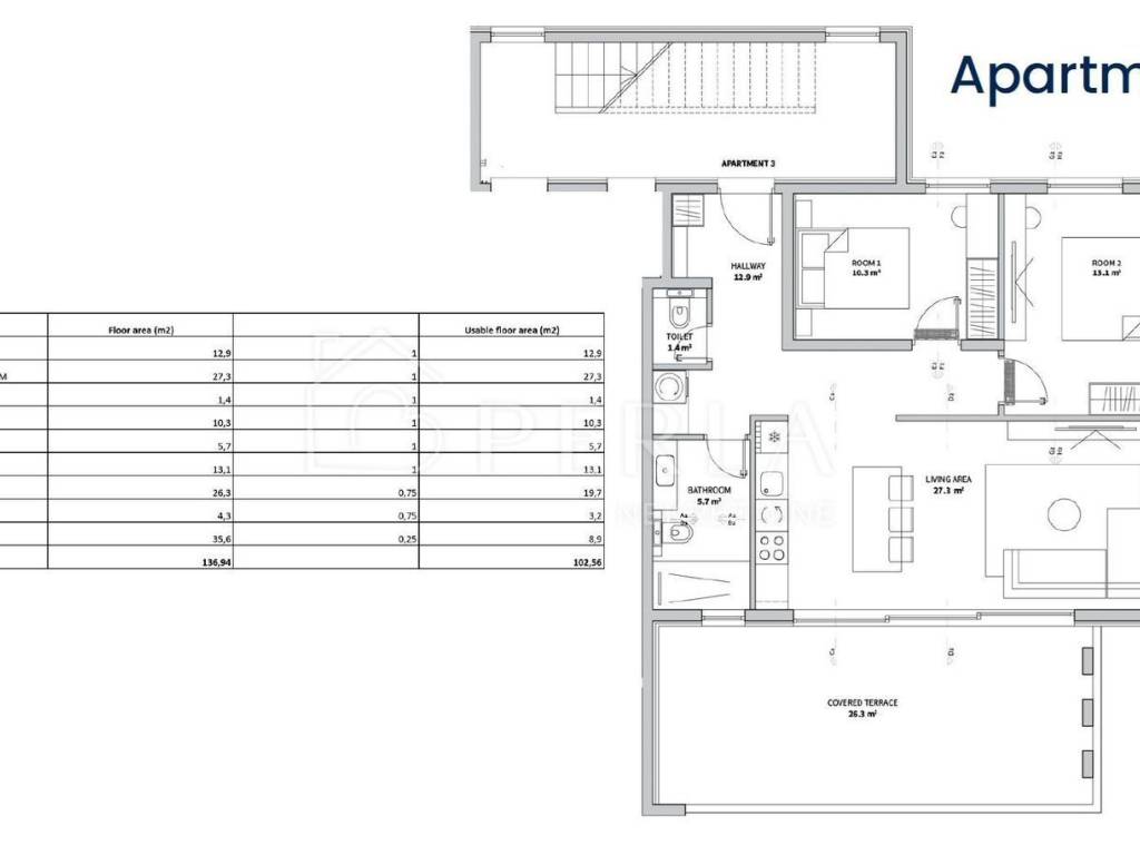 ZATON - prodaje se dvosoban luksuzni stan na prvom katu, udaljenost od mora samo 10 m! Na odličnoj lokaciji s pogledom na more nalazi se ovaj projekt novogradnje sa 4 stambene jedinice. Zgrada je odlično pozicionirana na samo 10 m od mora i uređene plaže. Stanovima u prizemlju pripadaju bazeni i vrtovi dok stanovima na katu pripadaju krovne terase. Svi stanovi posjeduju po dva vanjska parkirna mjesta. Ove luksuzne jedinice predstavljaju spoj bezvremenske arhitekture, pametne tehnologije i vrhunske sigurnosti. Idealan izbor za one koji traže više od običnog doma – prostor koji odiše elegancijom, funkcionalnošću i sofisticiranim životnim stilom. Ovaj dvosoban stan A3 nalazi se na prvom katu i sastoji se od: - Hodnika (12,9 m2) - Kuh,blag.i dn.boravka (27,3 m2) - Sp.sobe 1 (10,3 m2) - Sp.sobe 2 (13,1 m2) - Kupaonice (5,7 m2) - WC (1,4 m2) - Spremište (4,3 m2 - 3,2 m2 netto) - Natkr. terase (26,3 m2 - 19,7 m2 netto) - 2 vanjska parkirna mjesta (35,6 m2 - 8,9 m2 netto) Ukupno: 136,94 m2 Ukupna netto korisna površina stana sa pripacima je: 102,56 m2 U ponudi su vrhunski opremljene luksuzne rezidencije koje pružaju izniman komfor, sigurnost i pametna rješenja za moderni stil života. Svaka jedinica je pažljivo dizajnirana kako bi zadovoljila najviše standarde suvremene arhitekture i luksuznog stanovanja. - Fasada izgrađena pomoću ETICS sustava. - Schuco aluminijska stolarija s visokokvalitetnim staklom za zaštitu od sunca. - OTIS lift s izravnim pristupom od prizemlja do krovne terase. - Svaki stan uključuje 2 prostrana parkirna mjesta opremljena punjačima za električna vozila. - Visina stropa u stanovima iznosi 268 cm. Opremljenost stanova: - Lođe na prvom i drugom katu opremljene su vanjskim kliznim aluminijskim griljama, koje osiguravaju hlad i zaštitu od sunca u svakom trenutku. - Stan u prizemlju uključuje veliki vrt, infinity bazen, vanjski tuš i ljetnu kuhinju. - Stan na drugom katu ima krovnu terasu s mogućnošću dodatne opreme (npr. infinity bazen, tuš, ljetna kuhinja, bioklimatska pergola). - Priprema za jacuzzi: lođe na prvom katu imaju predinstalaciju za jacuzzi, dostupnu na zahtjev kupca. Pametne značajke doma: - Motorizirane venecijanere ugrađene su u spavaće sobe ,komarnici su na svim prozorima i balkonskim vratima. - Kolnoa protuprovalna i protupožarna vrata s ulazom putem šifre. - Ulaz u zgradu opremljen je čitačem otiska prsta, kao i klasičnom bravom. - Luksuzna vrata od poda do stropa bez vidljivih okvira. - Između stanova ugrađena je dodatna zvučna izolacija, a thermo-tech zvučna i toplinska izolacija postavljena je na svakoj etaži radi veće privatnosti i udobnosti. Oprema: - Podno grijanje (Vaillant ili Mitsubishi dizalice topline) - Hlađenje vrhunskim Mitsubishi klima uređajima. - Sustavi grijanja i hlađenja bit će povezani na Wi-Fi daljinsko upravljanje. - Svaki stan ima poseban ugrađeni sustav za omekšavanje vode. - Visokokvalitetna sanitarija (Grohe, Hansgrohe, Villeroy & Boch ) - Keramičke pločice velikog formata (240x120cm) U zgradi su na prodaju sljedeći stanovi: A1 – prizemlje, trosoban stan s vrtom od 223,81 m2 - 1.565.130,00 € A2 – 1. kat, dvosoban stan 91,51 m2 - 686.325.000,00 € A3 – 1. kat, dvosoban stan 102,56 m2 - 769.200,00 € A4 – 2. kat, trosoban stan s krovnom terasom 225,35 m2 - 1.750.423,00 € Zaton je malo turističko mjesto smješteno u istoimenom zaljevu Zadarskog kanala. Pješčane plaže u sjeni stoljetnih borova idealne su za obitelji s djecom. Želite li pronaći mir, kristalno bistro more, čisto podmorje, hlad borovih šuma, nezaboravne zalaske sunca, onda je Zaton idealno mjesto za Vas. Planirani završetak gradnje do kraja 2025.! **KUPAC NE PLAĆA AGENCIJSKU PROVIZIJU! ID KOD AGENCIJE: A-3331 Alma Cipurković Mob: +385 (0)91 400 1616 Tel: +385 (0)99 284 1984 E-mail: alma@perlanekretnine.hr www.perlanekretnine.hr Iva Prtenjača Mob: +385 (0)91 400 1414 Tel: +385 (0)99 284 1984 E-mail: iva@perlanekretnine.hr www.perlanekretnine.hr