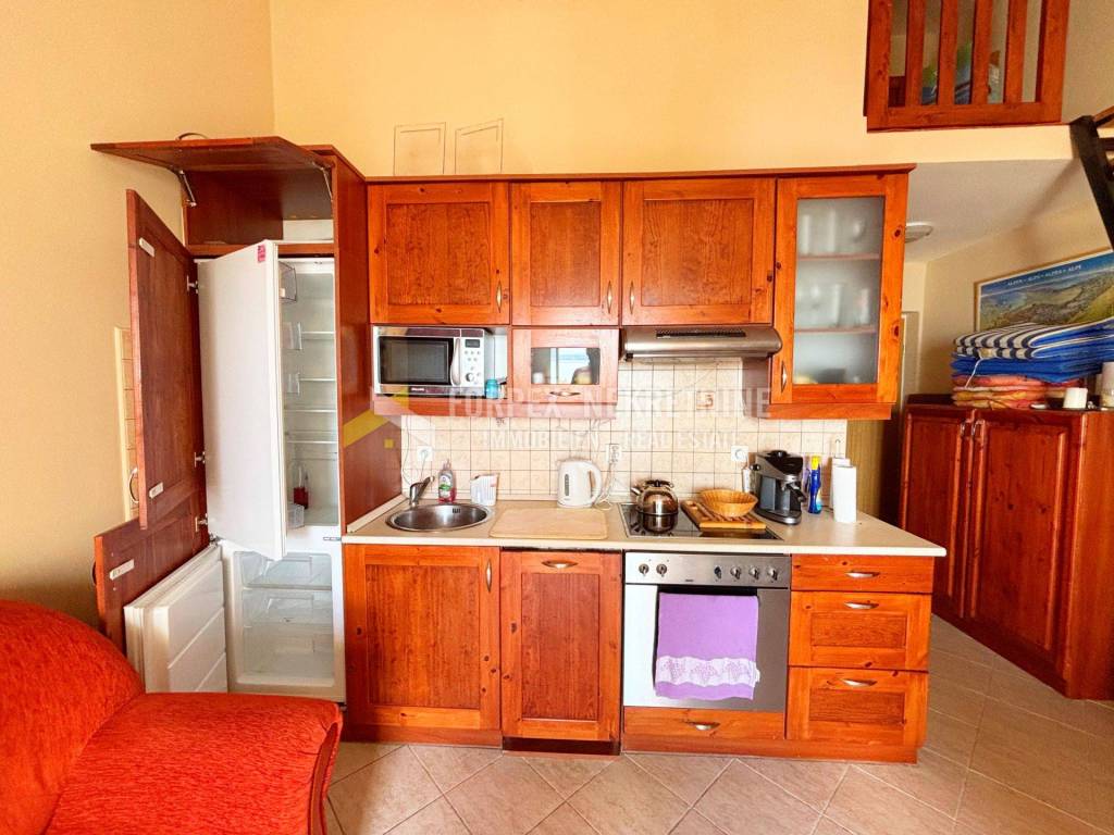 Sastoji se od ulaznog hodnika, dnevnog boravka, blagovaonice i kuhinje, odvojene spavaće sobe, kupaonice, lođe, te balkona sa predivnim pogledom na more.