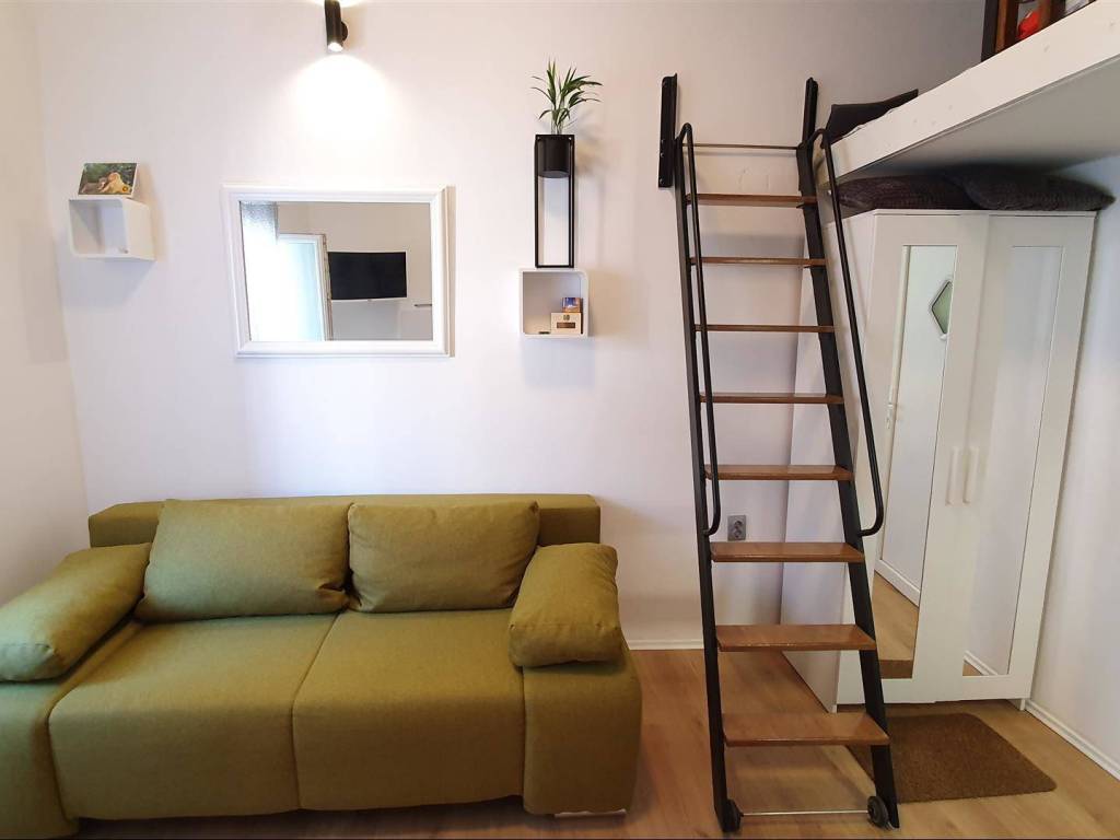 Iznajmljujemo malu funkcionalnu garsonijeru u visokom prizemlju etažirane stambene zgrade u neposrednom centru grada Pule, neto površine (14,41m2) dok u naravi zbog galerije obuhvaća (20m2).