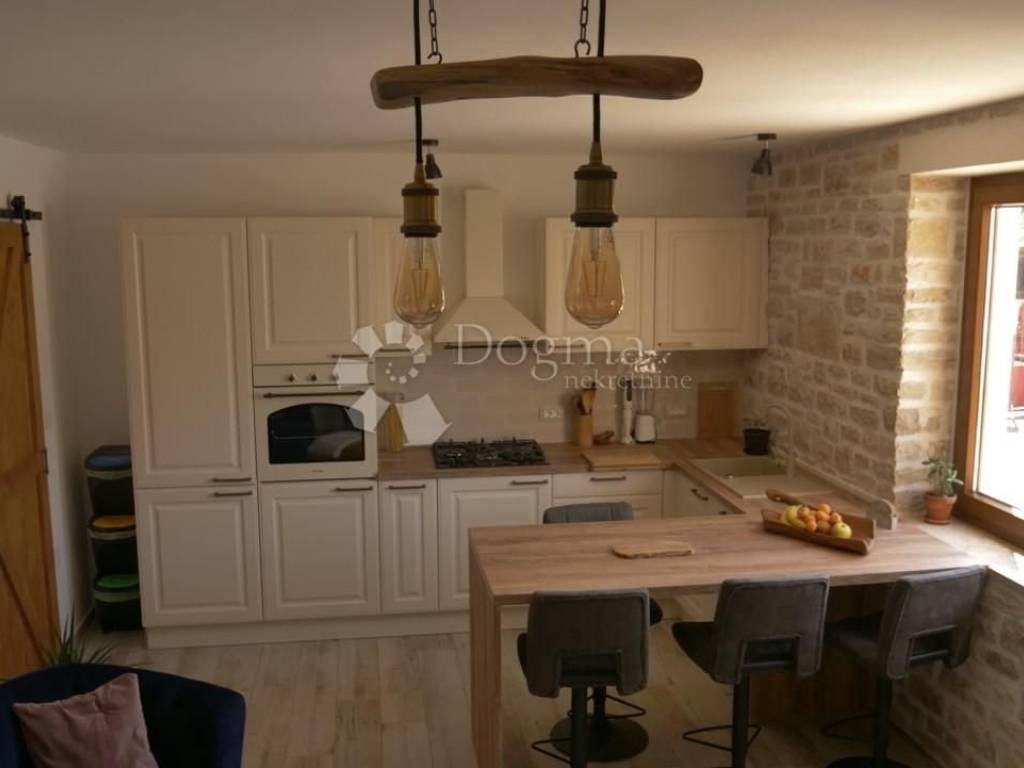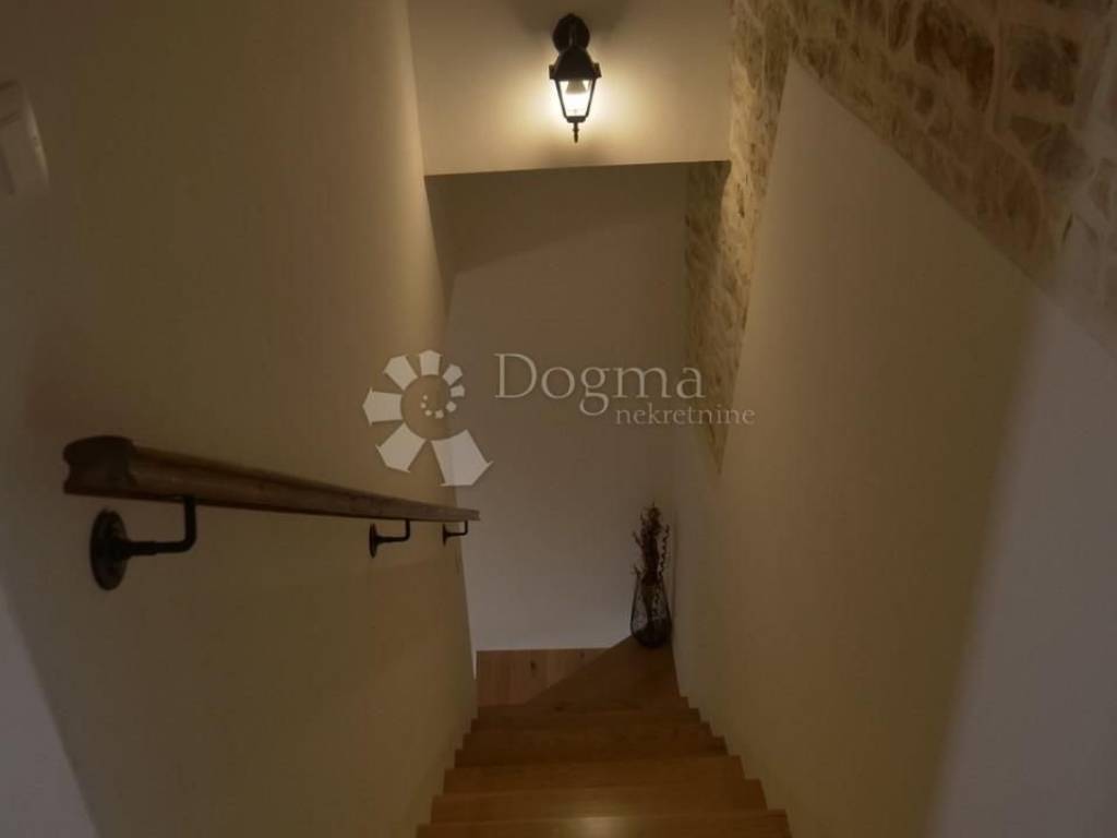 Prodaje se prekrasna kamena katnica u nizu površine 80m2, koja predstavlja autentičan spoj rustikalnog šarma i tradicionalnog dizajna. U prizemlju se nalazi kuhinja i dnevni boravak, wc te spremište ispod stepeništa. Na prvom katu smještene su dvije spavaće sobe i kupaonica. Iz glavne spavaće sobe izlazi se na balkon s pogledom na mirnu slijepu ulicu. Ispred kuće je betonirani podest s vrtnom garniturom, idealno mjesto za uživanje u ljetnim danima. Kuća je kompletno renovirana 2020. godine, uključujući instalacije, međukatnu konstrukciju, zidove i krov. Opremljena je PVC stolarijom, a posljednje dvije godine uspješno je rentana, što ju čini profitabilnom investicijom. Prodaje se namještena i spremna za useljenje, bez potrebe za dodatnim ulaganjima. Ova šarmantna kuća nalazi se u blizini mora i svih potrebnih sadržaja. Blizina plaža i ostalih pogodnosti čini je idealnom za ugodan obiteljski život ili iznajmljivanje turistima, pružajući mogućnost brzog povrata uloženih sredstava. Ne propustite priliku da postanete vlasnik ove šarmantne kuće koja nudi sve što vam je potrebno za udoban i ispunjen život ili unosan turistički najam! Za više informacija ili za dogovor o razgledavanju, slobodno nas kontaktirajte. Kontakt: - Jenny Pančić +385 98 958 4848 / jenny.pancic@dogma-nekretnine.com