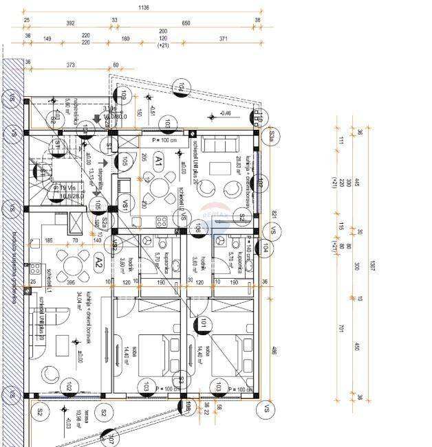 Stan se sastoji od jedne spavaće sobe, dnevnog boravka s kuhinjom i blagovaonicom, kupaonice i terase. Stambena površina je 58 m2, a terasa je 11 m2.