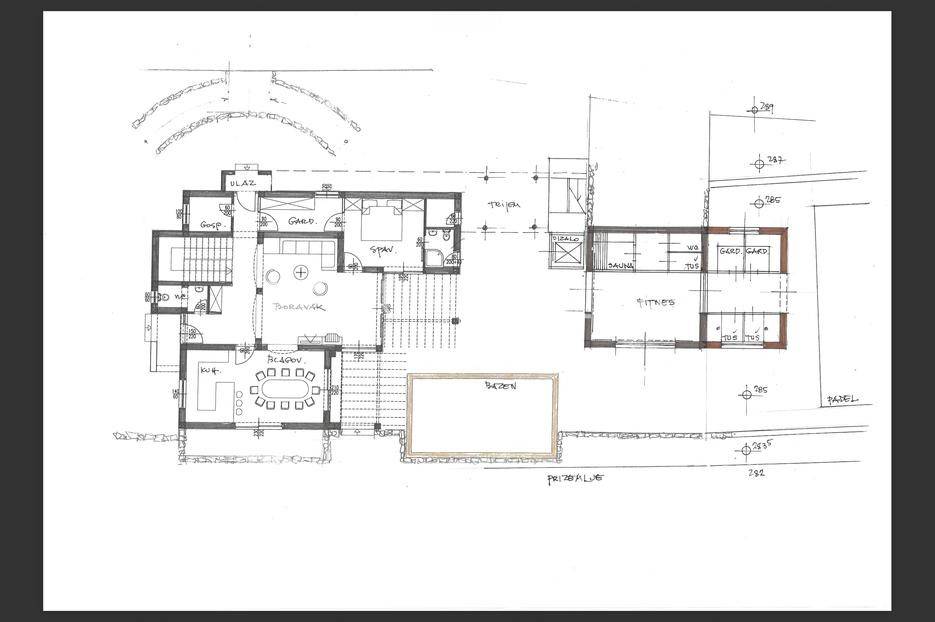 Istra, Grožnjan, na prodaju ekskluzivno građevinsko zemljište s idejnim projektom smješteno u netaknutoj prirodi iznad Grožnjana - bisera Istre poznatog po umjetnosti, glazbi i autentičnom ambijentu.Zemljište ukupne površine 2.048 m², od čega 1.529 m² građevinsko, a 519 m² poljoprivredno, nalazi se u slijepoj ulici, u potpunoj osami i miru, okruženo isključivo šumom i zelenilom.Pozicionirano na povišenoj točki iznad guste šume, zemljište nudi nesmetan panoramski pogled na Jadransko more, stvarajući impresivan vizualni doživljaj tijekom cijele godine.Idejni projekt predviđa luksuznu vilu s infinity bazenom, hortikulturno uređenim vrtom i zapadnom orijentacijom.Glavni objektPodrum:tehnička prostorija (strojarnica)dodatna prostorija s tušem i sanitarnim čvoromPrizemlje:ulazni prostorsoba za goste s garderobom i vlastitom kupaonicomprostran dnevni boravak povezan s kuhinjom i blagovaonicomvelika terasa/blagovaonski prostordodatna prostorija s posebnim vanjskim ulazom (spremište ili multifunkcionalna namjena)Prvi kat:tri spavaće sobe, svaka s vlastitom kupaonicomglavna spavaća soba s izlazom na vanjski prostor i pogledom na vrtdvije dodatne sobe s pogledom na šumu i moreDodatni sadržaji:garaža na gornjoj raziniprostor s garderobama, tuševima i sanitarnim čvorovima (predviđeno nakon sportskih aktivnosti)sportski teren (padel, tenis ili višenamjenski)jacuzzi u staklenom prostoru s pogledom na šumu i moresaunaProjektom su obuhvaćene i tri kuće u nizu, projektirane kao samostalne jedinice, ali povezane u skladnu arhitektonsku cjelinuPristup osiguran putem javne prometne površineSva infrastruktura u bliziniLokacijska informacija i idejni projekt dostupni na uvidUdaljenost do obližnjih destinacija:Grožnjan - nekoliko minuta vožnjeMotovun, Brtonigla, Novigrad, Umag - 15 do 25 minutaStaza Parenzana - u neposrednoj bliziniZa više informacija stojimo na raspolaganju
