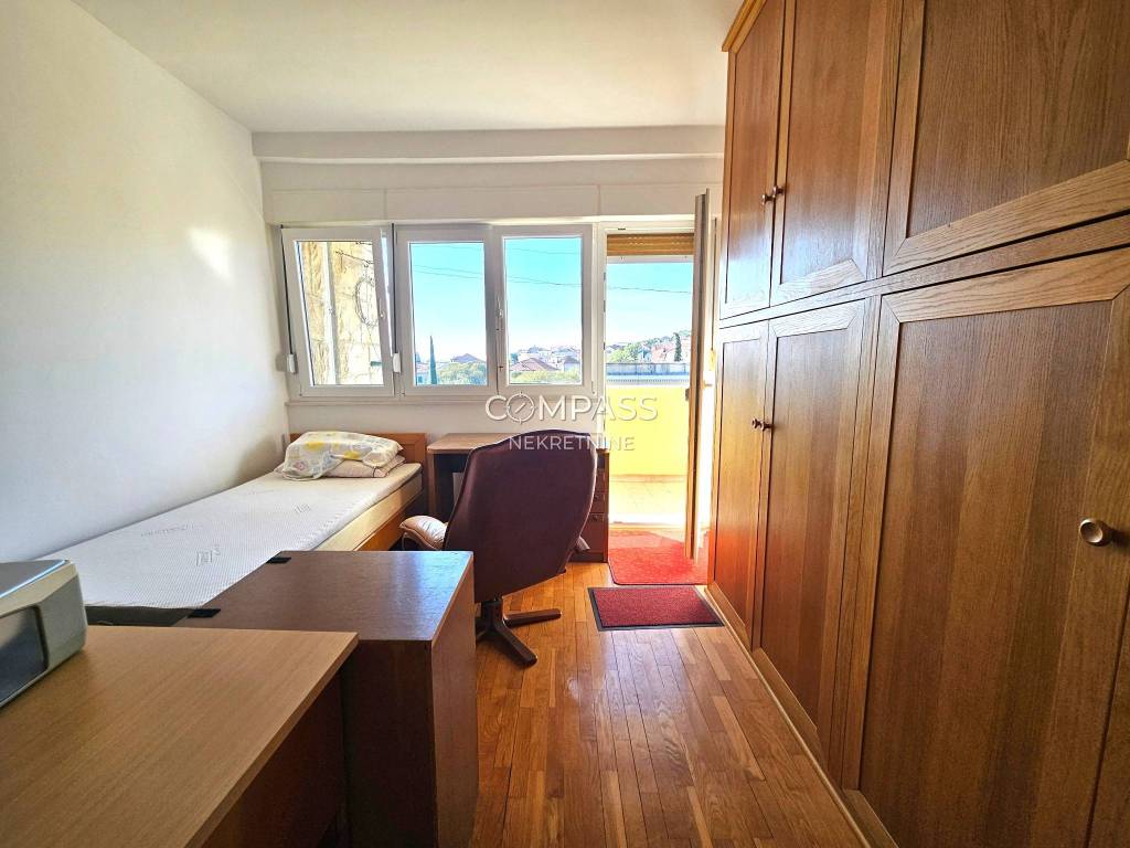 Stan se sastoji od kuhinje, velikog hodnika, kupaonice, zasebnog WC-a, dnevnog boravka s blagovaonicom, tri spavaće sobe i dva balkona – jedan povezan s dnevnim boravkom i jednom spavaćom sobom, a drugi uz zasebnu spavaću sobu. Prostran je, svijetao i idealan za ugodan život, a s obzirom na lokaciju, nudi kombinaciju mira i praktičnosti blizine centra. Blizu su osnovne i srednja škola, park šuma Marjan, trgovine, ljekarne, dom zdravlja te svi ostali bitni sadržaji.