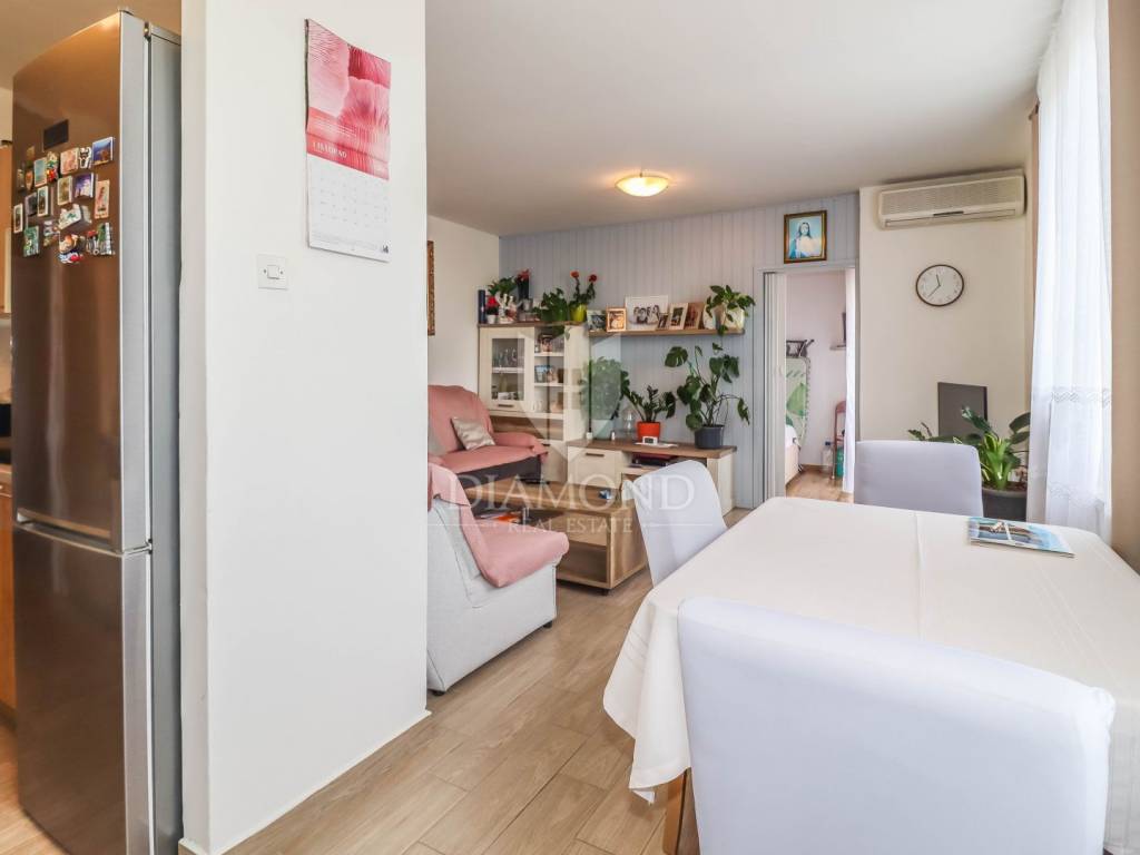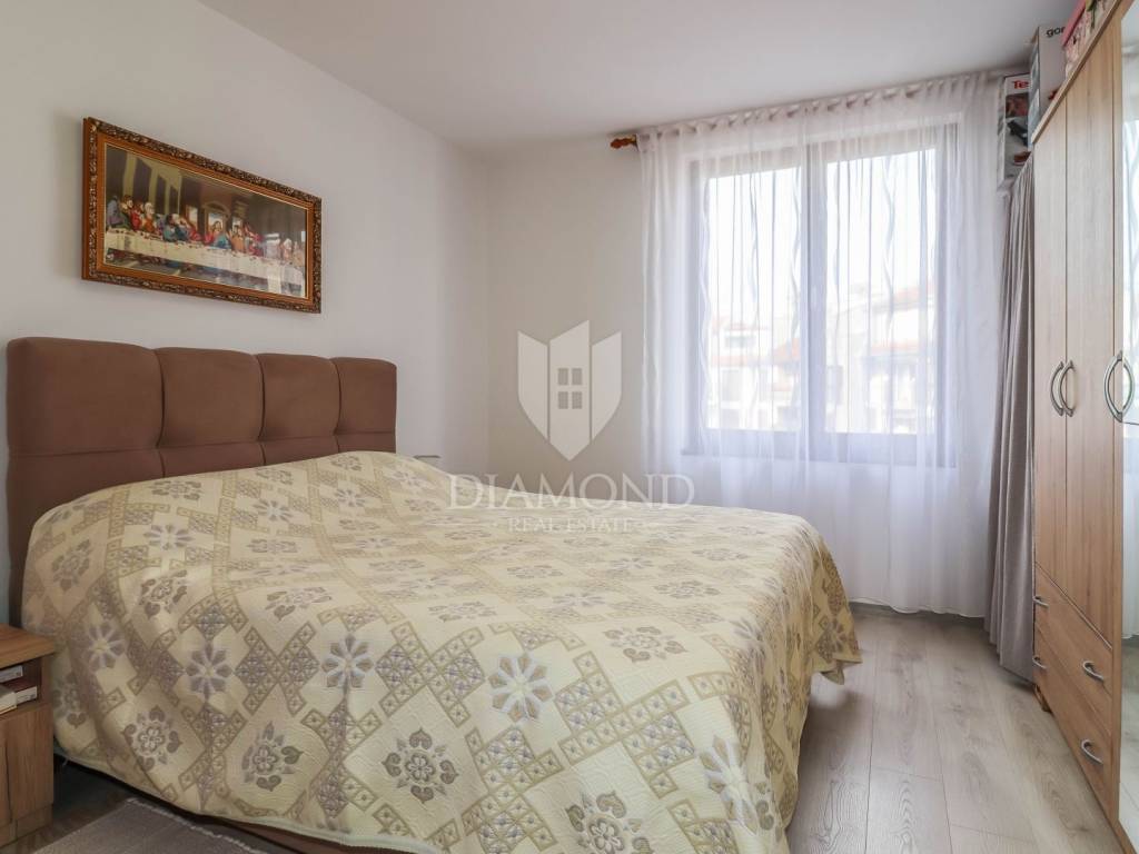 Na drugom katu uredne zgrade, u mirnom kvartu s puno parkinga i parkom u blizini, čeka vas stan koji ima sve što treba – i još malo više. U neposrednoj blizini nalaze se trgovine, kafići, restorani, a do predivnih rovinjskih plaža stižete za samo nekoliko minuta hoda.
