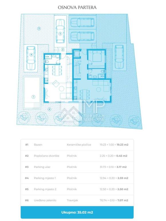 - Privatni grijani bazen 19,23 m2 sunčalište i lounge zona