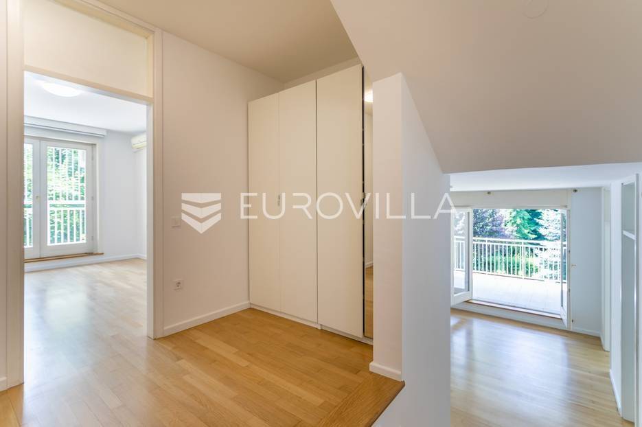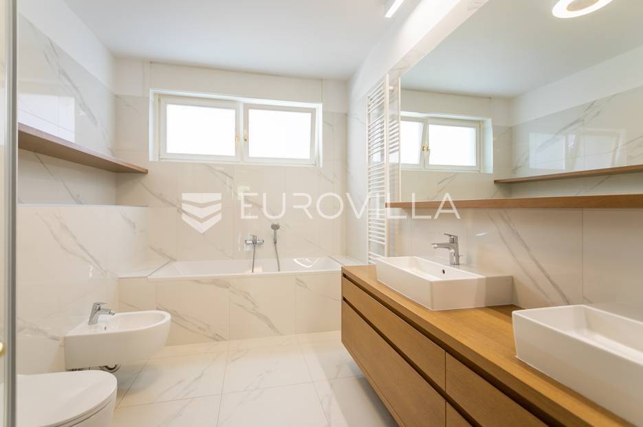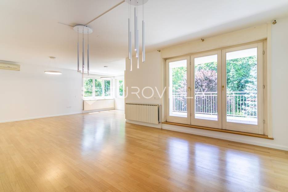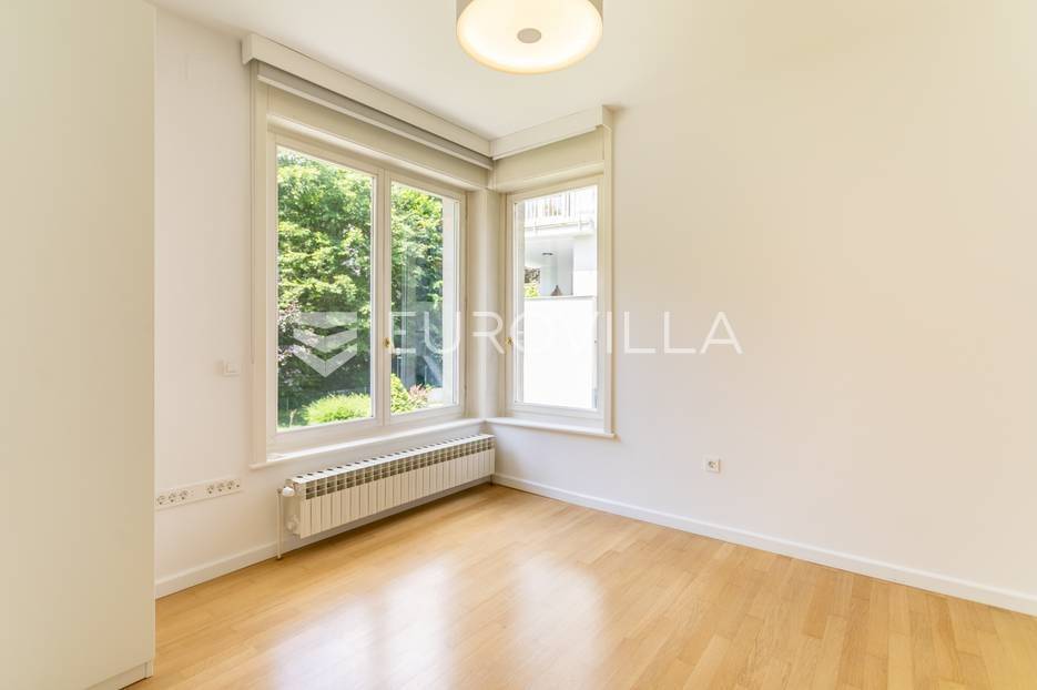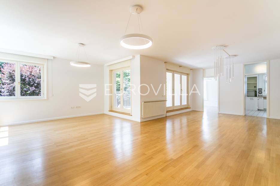 Zagreb, Tuškanac, prekrasan peterosoban stan, zatvorene površine 183 m2 sa spremištem, garažom i parkirnim mjestom. Ukupno NKP 215 m2.Sastoji se od ulaznog hodnika, dnevnog boravka, blagovaonice, kuhinje, dvije kupanice s podnim grijanjem, četiri spavaće sobe, toaleta, ostave te dvije loggie.Novija zgrada. Kompletno novo adaptiran 2021 god, sve nove instalacije, etažno plinsko grijanje, klimatiziran, nova kuhinja sa aparatima, nenamješten.Odlična lokacija, u blizini parka, škole, vrtića, trgovine i javnog prijevoza, samo 10 min lagane šetnje do strogog centra grada.Ostale informacije na upit.