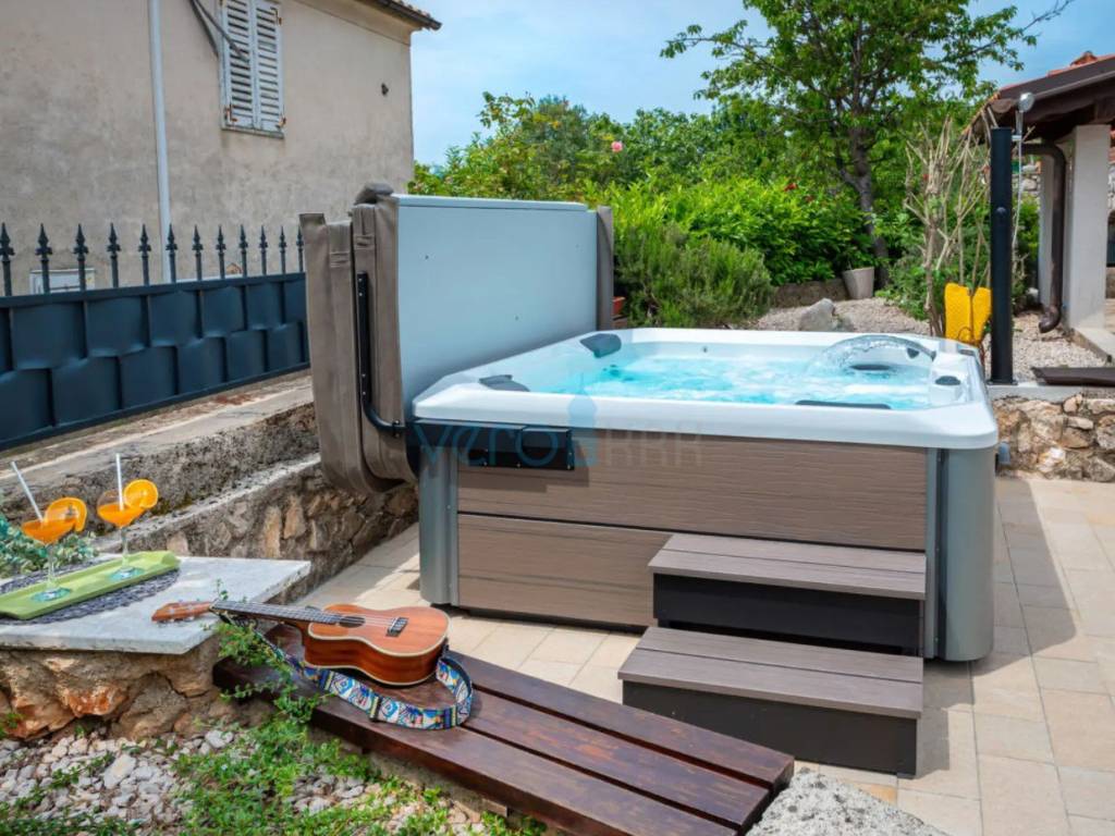 Otok Krk, Dobrinj, Kras, u potpunosti renovirana i uređena kamena kuća, prilagođena modernom načinu života. Nekretnina čini cjelinu od dvije parcele: glavna parcela od 277m2, na kojoj se nalazi  dvojna kuća ukupne površine 169m2, te posebna parcela od 247m2, na kojoj je parkiralište i spremište od 20m2.