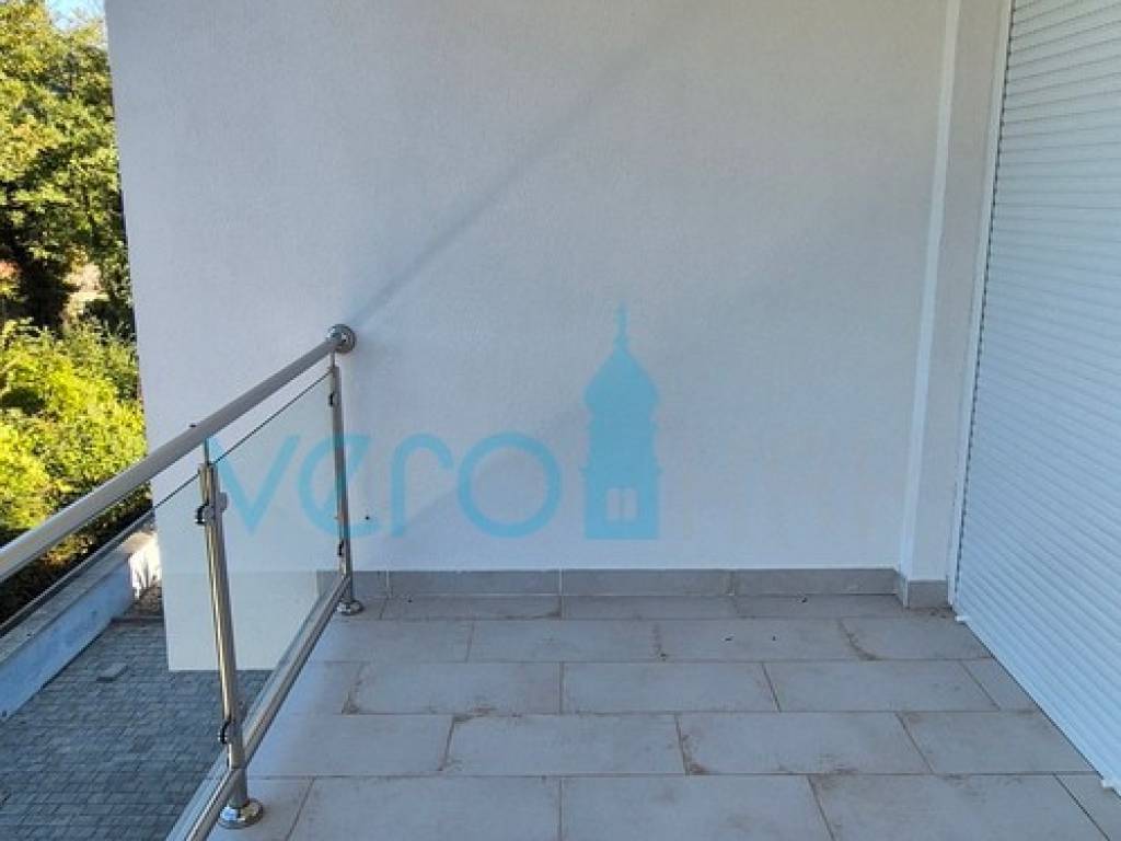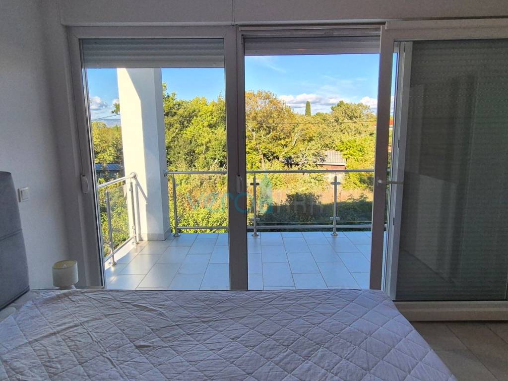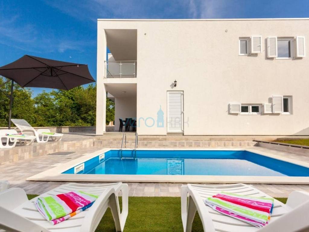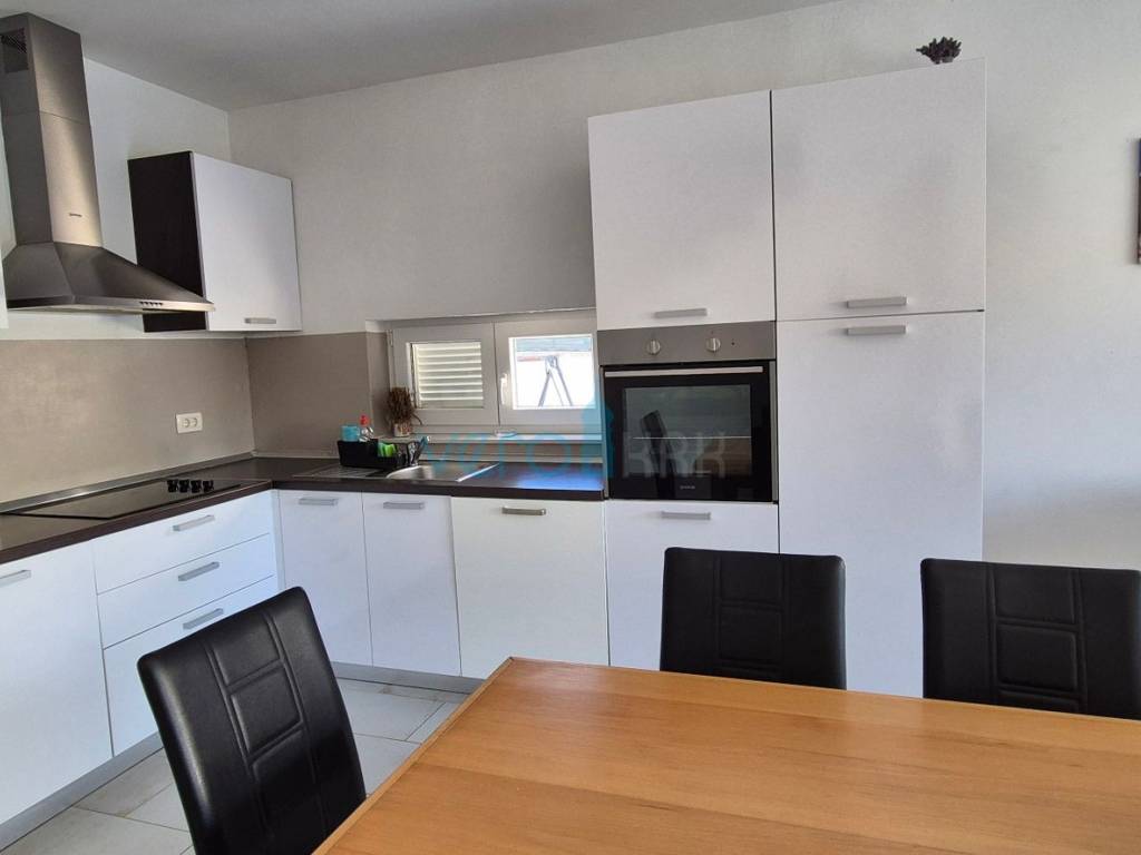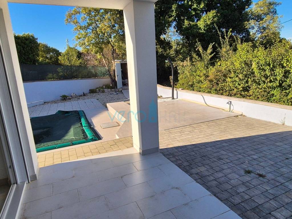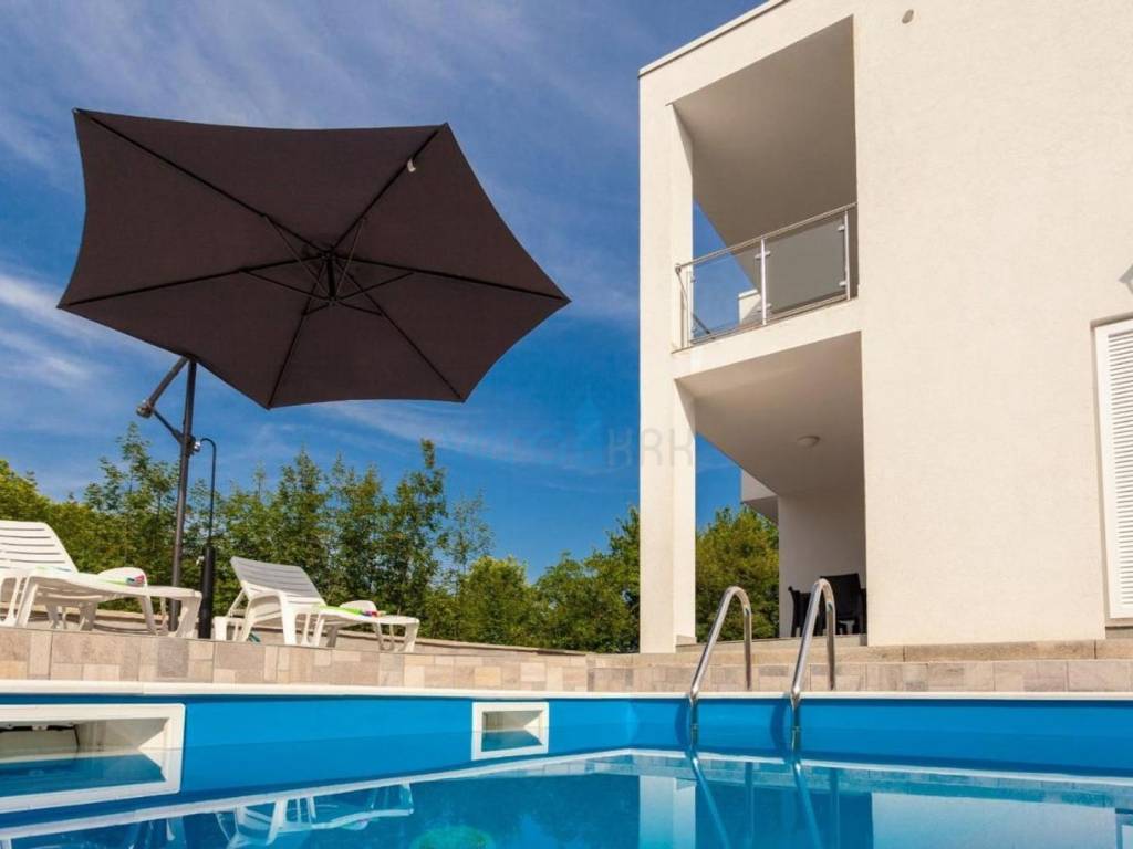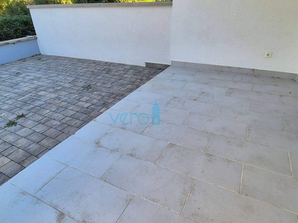Otok Krk, Malinska, šira okolica, dvojna kuća s bazenom i okućnicom izgrađena 2017. godine u mirnom okruženju prirode u okolici Malinske. Stambeni prostor razveden na prizemlje i prvi kat, ukupne površine 78 m2. U prizemlju je dnevni boravak, kuhinja i blagovaonica,  WC-a i natkrivena terasa. Unutarnje stepenište povezuje prizemlje s prvim katom gdje je odvojen spavaći dio kuće s dvije spavaonice, kupaonicom i balkonom. Na uređenoj okućnici površine 200 m2 je parking za 2 automobila, pomoćni objekt, prostor za roštilj, terasa sa sunčalištem i bazen.