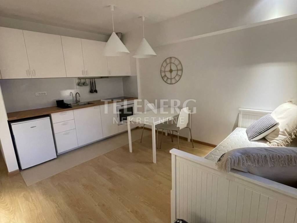 Stan je u potpunosti opremljen (namještaj: king size krevet, ormari, ormarić za cipele, stol, stolice, fotelja, potpuno opremljena kuhinja sa svim posuđem).