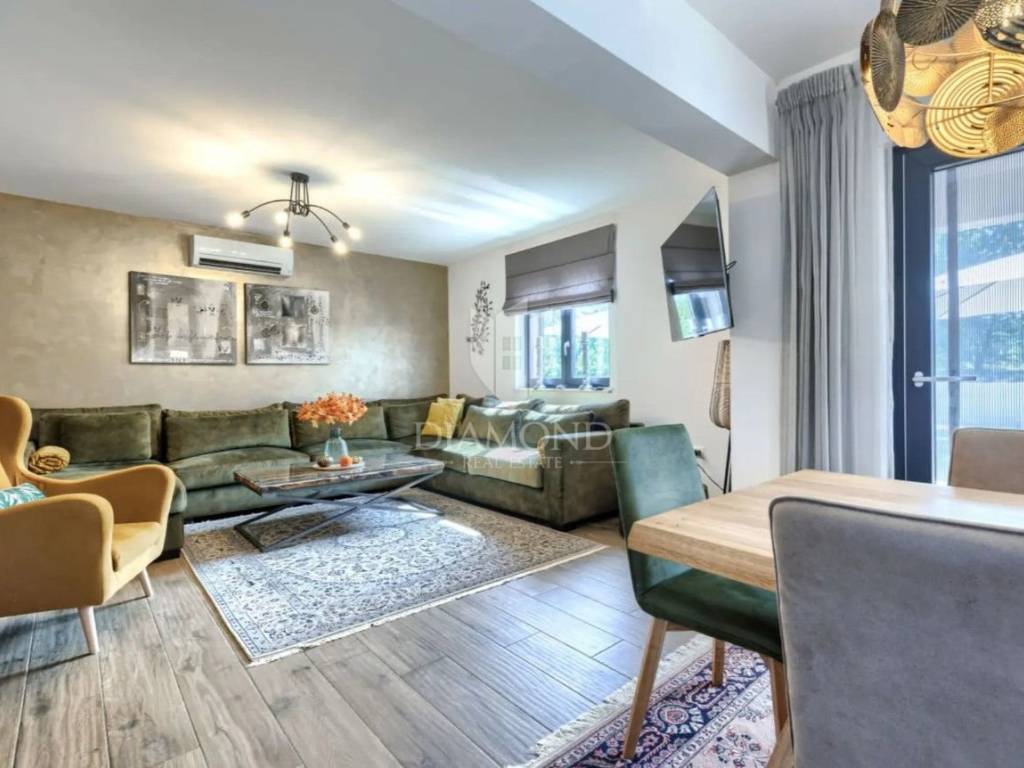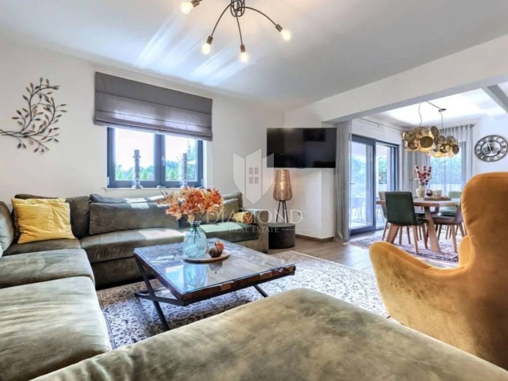 Vila se prostire na ograđenoj parceli od 1207 m2 i nudi izniman komfor kroz četiri moderno uređene spavaće sobe i tri elegantne kupaonice, što je čini savršenom za veću obitelj ili goste. Središnji dio kuće čini prozračni dnevni boravak s velikim staklenim stijenkama koje otvaraju pogled prema bazenu i vrtu. U središtu boravka nalazi se moderan kamin koji prostoru daje toplinu i ugodnu atmosferu tijekom cijele godine, dok se elegantno uređena kuhinja i blagovaonica savršeno uklapaju u suvremeni interijer.