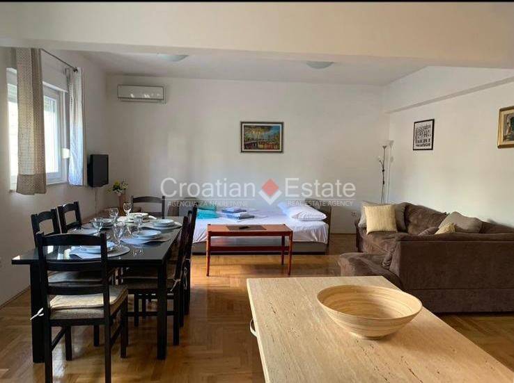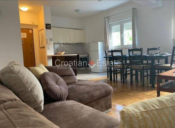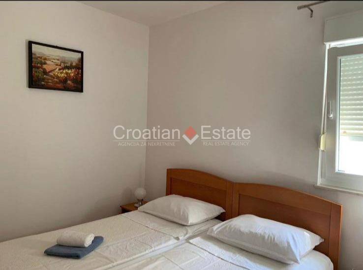 Iznajmljujemo komforni dvosobni stan smješten u prizemlju novije zgrade u mirnom dijelu Marjana. Stambena površina stana iznosi 85m2, a sastoji se od kuhinje s blagovaonicom i dnevnim boravkom, dvije spavaće sobe, dva kupatila i ima zajedničko korištenje dijela dvorišta.