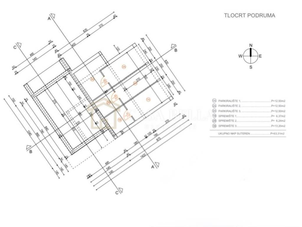 * Parkirno mjesto u garaži: 12,50 m²