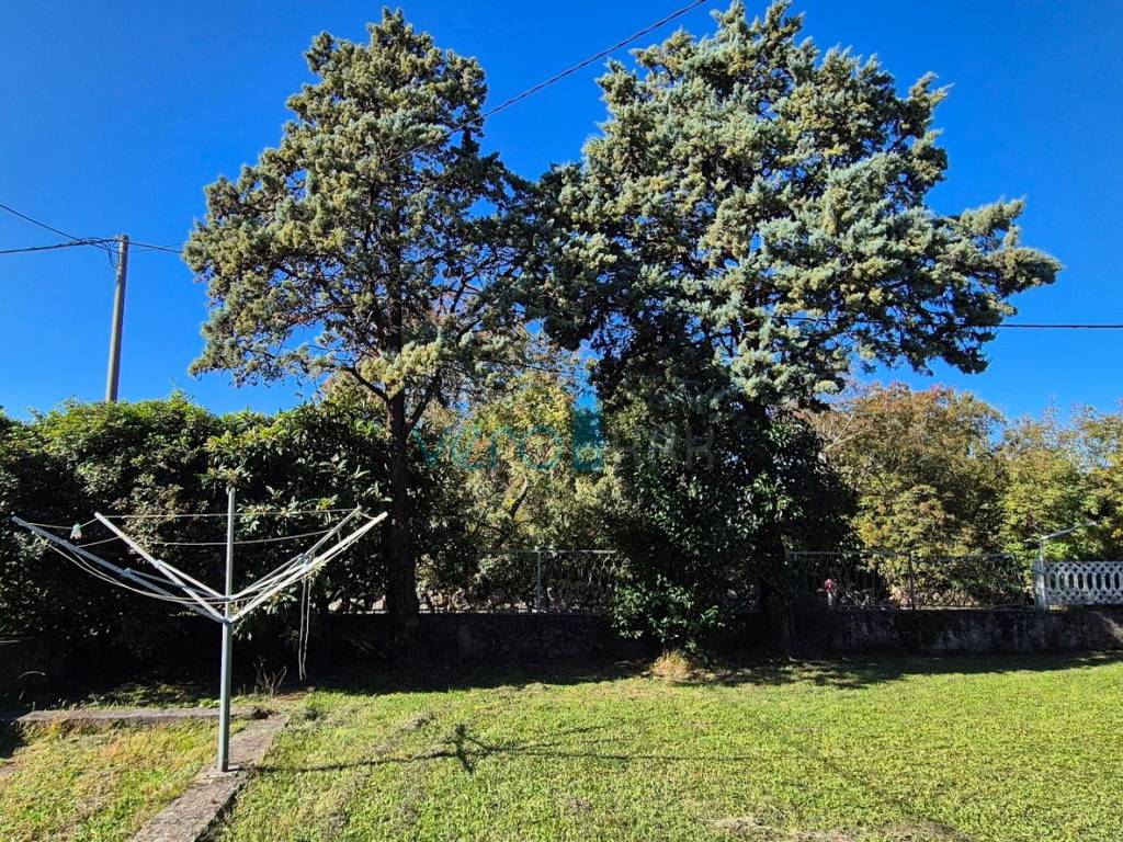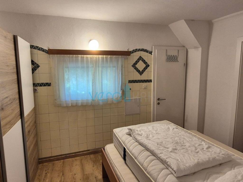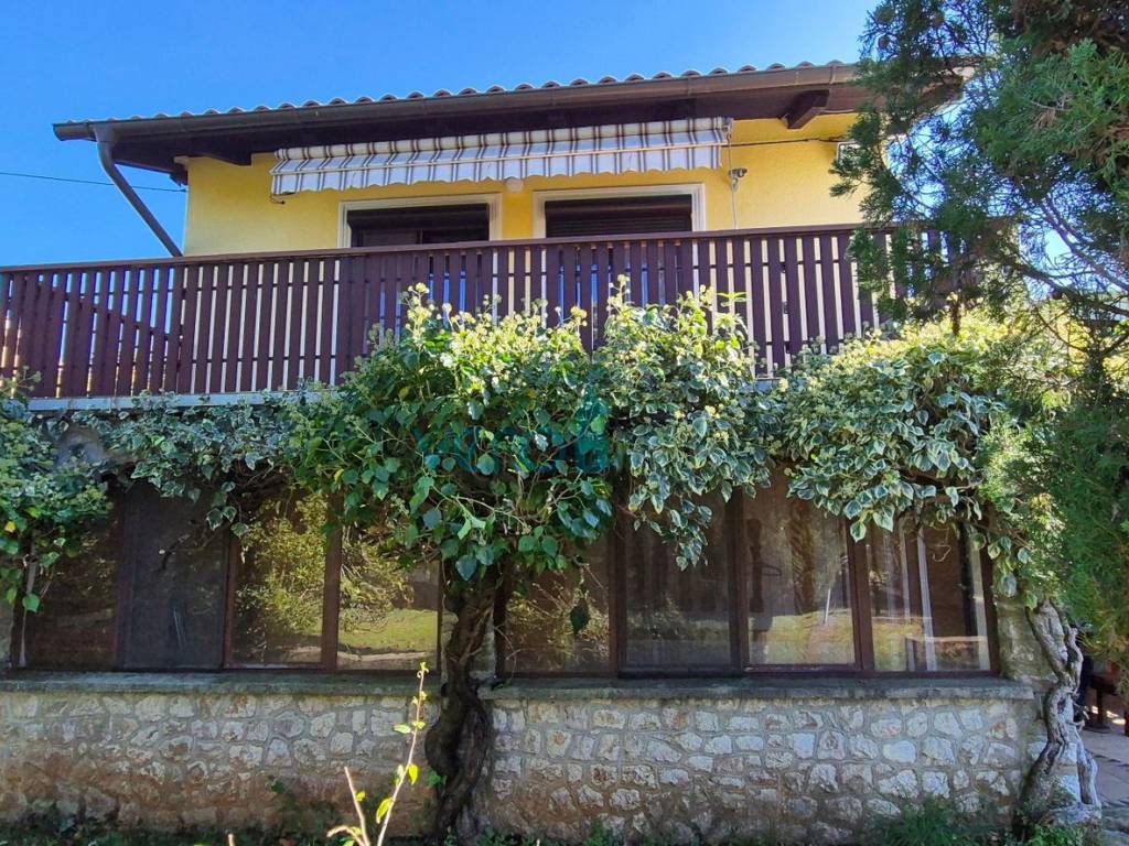 Otok Krk, Dobrinj, okolica, samostojeća kuća od 130m2 na parceli od ukupno 516m2. Sastoji se od prizemlja i kata. U prizemlju je ulazni prostor kroz zatvorenu verandu, kuhinja sa blagovaonicom, jedna spavaća soba, kupaonica, odvojeni WC, te spremište. Na katu su tri spavaće sobe, kupaonica, te balkon. Dvije spavaće sobe imaju izlaz na balkon. Uz kuću je garaža sa dva prostora i natkriveni prostor terase. Na parceli su još dva odvojena spremišta.  Ispred kuće je prostrani vrt, sa dovoljno prostora za postavljanje bazena, a iza kuće je roštilj.