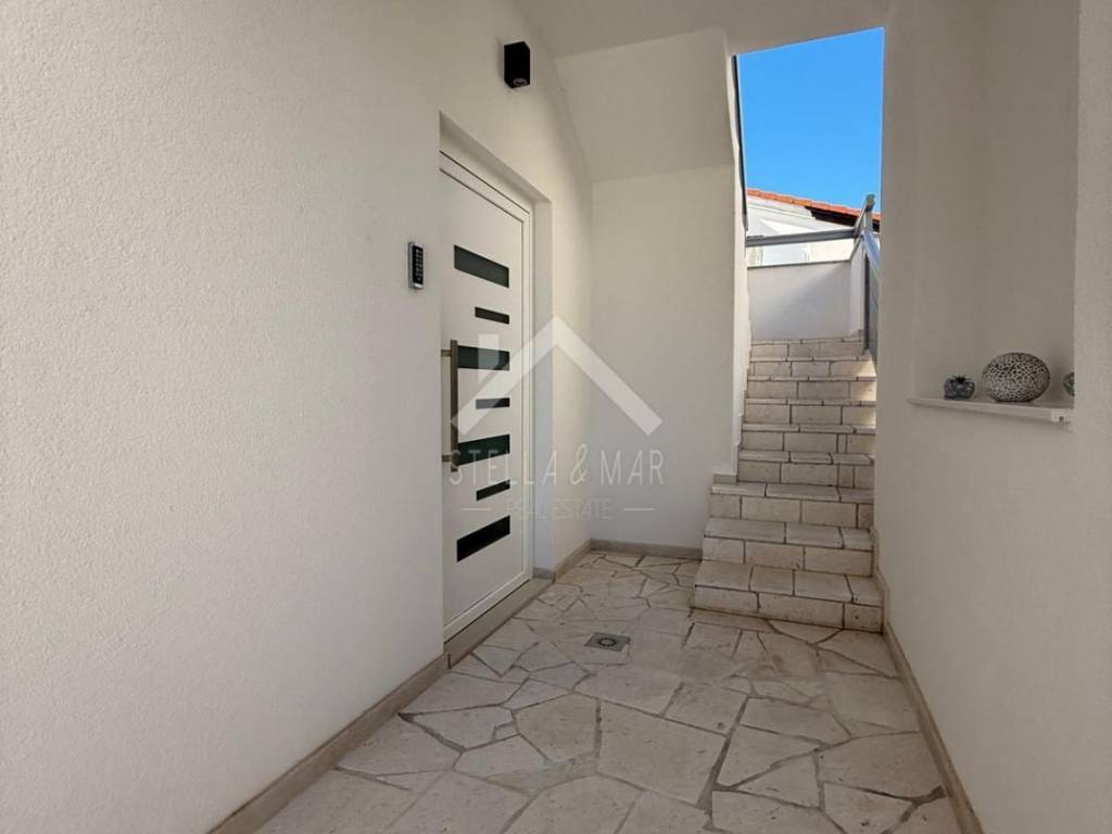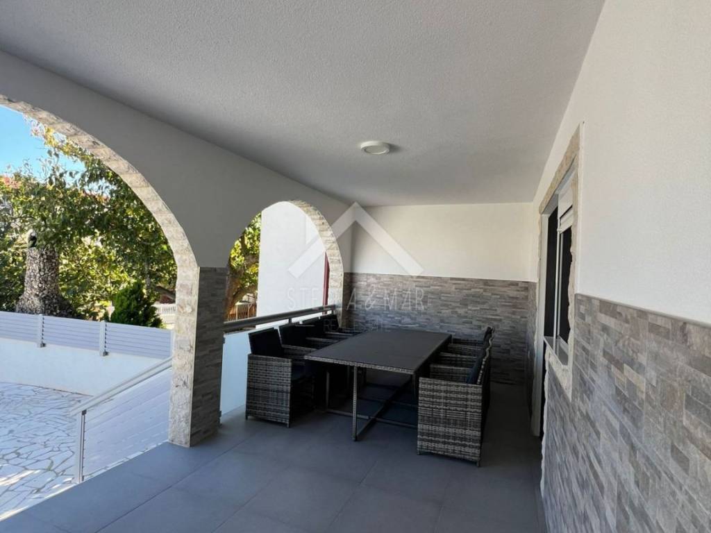 Prodaje se potpuno renovirana kuća sa 3 apartmana i konobom na otoku Viru. Nalazi se na parceli površine 297m2 i raspolaže sa podrumom, visokim prizemljem i katom. U podrumu se nalazi predivno uređena konoba sa 3 prostorije koje je moguće opremiti po vlastitim željama. U visokom prizemlju se nalaze dva apartmana. Jedan je jednosobni sa dnevnim boravkom, kuhinjom, blagovaonom, spavaćom sobom i kupaonom. Pripada mu i prostrana natkrivena terasa. Dvosobni apartman raspolaže sa dnevnim boravkom, kuhinjom, dvije spavaće sobe, kupaonom i natkrivenom terasom. Nadalje stepenice vode na kat kuće gdje se nalazi komforni apartman sa tri spavaće sobe , dvije kupaone, dnevnim boravkom, kuhinjom i natkrivenom terasom. Sve prostorije su klimatizirane. Svi apartmani su u potpunosti opremljeni te spremni za turistički najam. Prostrano dvorište, uređeno kamenom. Udaljenost do mora je cca 200m. Dokumentacija uredna, moguć dogovor. Otok Vir obogaćuje veliki društveno-zabavni programi tijekom turističke sezone, za svakoga ponešto zanimljivo. Povezan je turističkim brodovima s ostalim turističkim destinacijama poput poznate kristalno plave i pješčane plaže Saharun, Kornati, Telašćica i sl. Grad Zadar udaljen je cca. 25km te zračna luka Zadar cca. 32km. U blizini je i grad Nin kojeg krase povijesne znamenitosti, a i pješčana Kraljičina plaža. Grad Zadar i Nin nalaze se u neposrednoj blizini, što čini veliku prednost življenja i sezonskog uživanja. Idealna je investicija za miran život, samim time pogodna je i za turistički najam koji će gostima pružiti idiličan odmor u malom mjestu nedaleko Zadra i Nina. Zadar je miran, a ujedno dinamičan grad na Jadranskoj obali. Bogat je brojnim povijesnim znamenitostima, društveno zabavnim aktivnostima te mediteranskim specijalitetima. Iznimno je dobro povezan sa raznim nacionalnim parkovima, otocima zadarskog arhipelaga, ali i mnoštvom zračnih linija koji polaze iz zadarske zračne luke Zemunik. Sve prethodno navedeno uvelike pridonosi odabiru stranih turista za turistički dolazak, kao i za kupnju nekretnina na ovi prostorima. ID KOD AGENCIJE: 2654 Stella Mar Mob: +385 91 320 4955 E-mail: info@stellamar.hr www.stellamar.hr