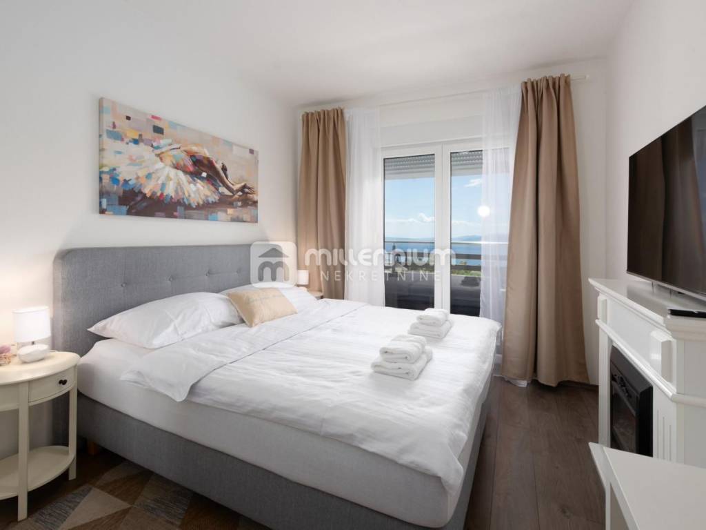 Stan se sastoji od hodnika, moderne kuhinje s blagovaonicom i dnevnim boravkom, tri udobne spavaće sobe, tri kupaonice te natkrivene terase s koje se pruža predivan pogled na more i cijeli Kvarner – idealno mjesto za uživanje u zalascima sunca i opuštajućim trenucima na otvorenom.