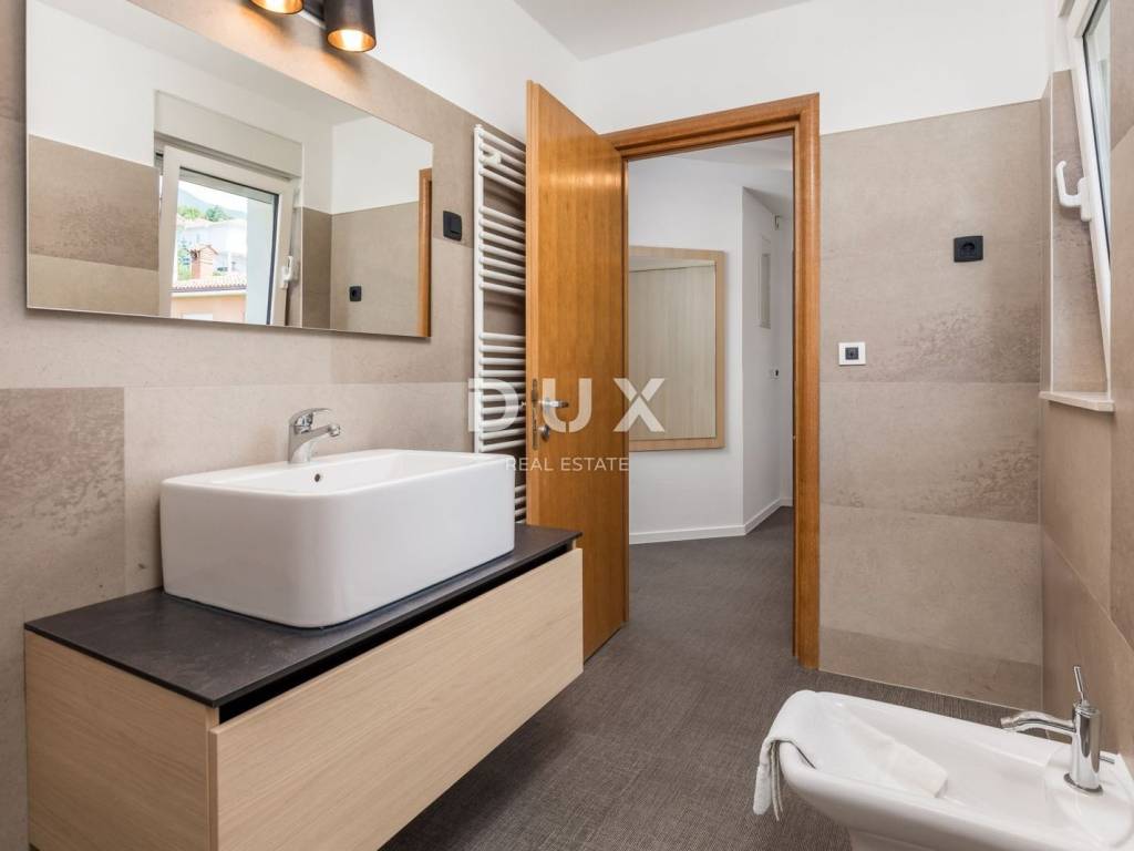 OPATIJA, IČIĆI – moderan stan od 51 m² za dugoročni najam, s bazenom i panoramskim pogledom na more Na iznimnoj lokaciji uz more, u mirnom dijelu Ičića pokraj Opatije, iznajmljuje se moderan i luksuzno opremljen stan smješten u višestambenoj zgradi s dizalom. Stan E5 se nalazi na 1. katu i raspolaže s dvije prostrane terase – jednom s otvorenim, a drugom s djelomičnim pogledom na more i Ičiće. Unutrašnjost je pomno uređena i funkcionalno raspoređena. Sastoji se od ulaznog prostora s garderobom, jedne spavaće sobe, kupaonice s walk-in tušem, bideom i WC-om te elegantnog dnevnog boravka povezanog s kuhinjom i blagovaonicom. U stanu je ugrađen sustav grijanja i hlađenja putem dizalice topline, a ventilacija s rekuperacijom osigurava optimalnu temperaturu i svjež zrak tijekom cijele godine. Na raspolaganju je jedno parkirno mjesto pod videonadzorom, a stanari mogu koristiti i vanjski bazen koji se dijeli s ostalim apartmanima u zgradi. Mjesečni najam: 950 € + režije. Za dogovaranje posjete nekretnine nazovite agenta s povjerenjem - konzultacija na njemačkom jeziku moguća. Poštovani klijenti, agencijska provizija naplaćuje se u skladu s Općim uvjetima poslovanja: www.dux-nekretnine.hr/opci-uvjeti-poslovanja ID KOD AGENCIJE: 42646 Marko Šutanovac Agent s licencom Mob: +385 91 189 8332 Tel: +385 91 480 8808 E-mail: marko@dux-nekretnine.hr www.dux-opatija.com