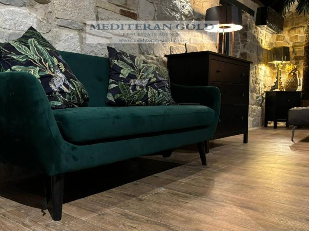 Kaštel Stari, Centar, 50m od mora, kompletno novo uređena i luksuzno opremljena kamena kuća, dvoetažni stan od 80m. U prizemlju se nalazi kuhinja i dnevni dio, na katu je jedna spavaća soba i kupatilo. Kompletno je sve opremljeno i namješteno. Agancija naplaćuje proviziju.