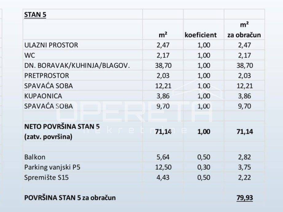 Stan S5 nalazi se na prvom katu zgrade. Sastoji se od 2 spavaće sobe, kuhinje, dnevnog boravka i blagovaonice, kupaonice, toaleta te hodnika. Pripada mu i balkon površine 5,64m2, spremište te vanjsko parkirno mjesto.