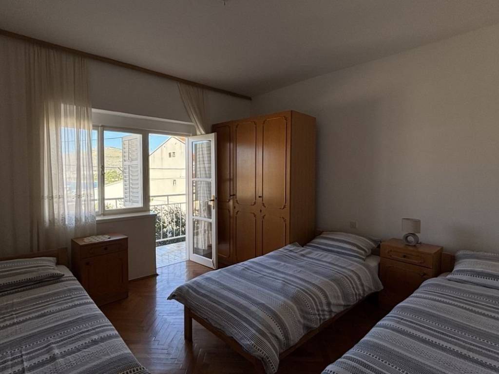 Na prodaju je obiteljska kuća s djelomičnim pogledom na more, smještena na zapadnoj strani otoka Čiovo, u mirnom okruženju s puno zelenila. Kuća se prostire na dvije etaže, zapadne je orijentacije i okružena vrtom s tipičnom dalmatinskom florom, što prostoru daje dodatnu privatnost i ugodan ambijent. Na prizemnoj etaži nalazi se prostorija površine oko 60 m², trenutačno u roh bau stanju. Ovaj prostor nudi mogućnost uređenja prema želji i potrebama kupca – u dodatni apartman, rekreacijsku prostoriju ili konobu. Na prvom katu nalazi se uređen trosoban apartman ukupne površine 127 m² s velikom terasom koja se proteže duž cijelog stana. Stan se sastoji od tri prostrane spavaće sobe, od kojih dvije imaju izlaz na balkon, svijetlog dnevnog boravka s pristupom balkonu, prostrane kuhinje s blagovaonicom, kupaonice te hodnika koji povezuje sve prostorije. Prostrani raspored i orijentacija prema zapadu osiguravaju obilje dnevnog svjetla i ugodan boravak tijekom cijele godine. Kuća je opremljena s dva klima uređaja, a prodaje se u postojećem stanju, što omogućuje budućem vlasniku jednostavno prilagođavanje interijera prema vlastitim željama. Uz kuću se nalazi vanjski parking za dva vozila, a okućnica pruža dovoljno prostora za dodatne sadržaje, poput manjeg vrta ili prostora za druženje. Nekretnina je odličan izbor za obiteljsko stanovanje ili kao investicija za turizam, zahvaljujući blizini mora, kampa, trgovine i ostalih sadržaja potrebnih za svakodnevni život i odmor. Grad Trogir i zračna luka Split nalaze se na manje od 8 kilometara udaljenosti, što lokaciju čini praktičnom i lako dostupnom.