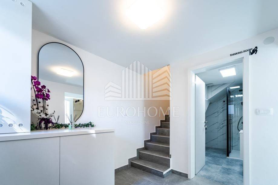 Na gornjoj etaži nalaze se tri dodatne sobe te druga kupaonica, što osigurava visoku razinu udobnosti i funkcionalnosti.