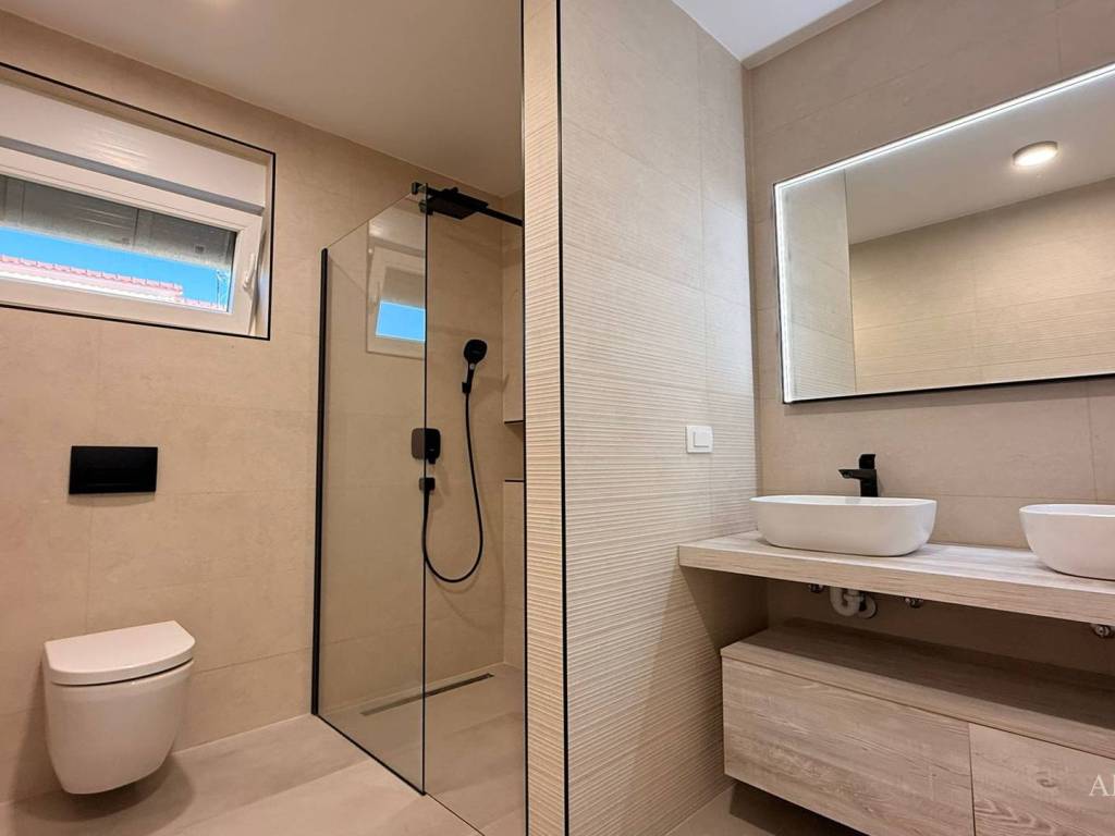 Stambena jedinica S2 - 1. KAT, posjeduje 25m2 dvrorišta i 5m2 ostave te 2 parkirna mjesta. Cijeli stan ima podno grijanje s WiFi upravljanjem, rolete na struju, klima ruređaj u spavaćim sobama i dnevnom boravku, protuprovalna vrata s pametnom bravom, mreže za komarce na svim prozorima i staklenim stijenama, odvojeni satovi za vodu i električnu energiju s posebnim brojilom za zajedničku potrošnju, ratificirane dizajnerske talijanske pločice, Hans Grohe sanitarije. Sastoji se od kupaonice 7,1m2, hodnika+garderobe 9,2m2, WC-a 3,05m2, 2 sobe (svaka 12,27m2), blagovaonice+kuhinje27,95m2, terase 10,96m2. Cijena 410000 EUR