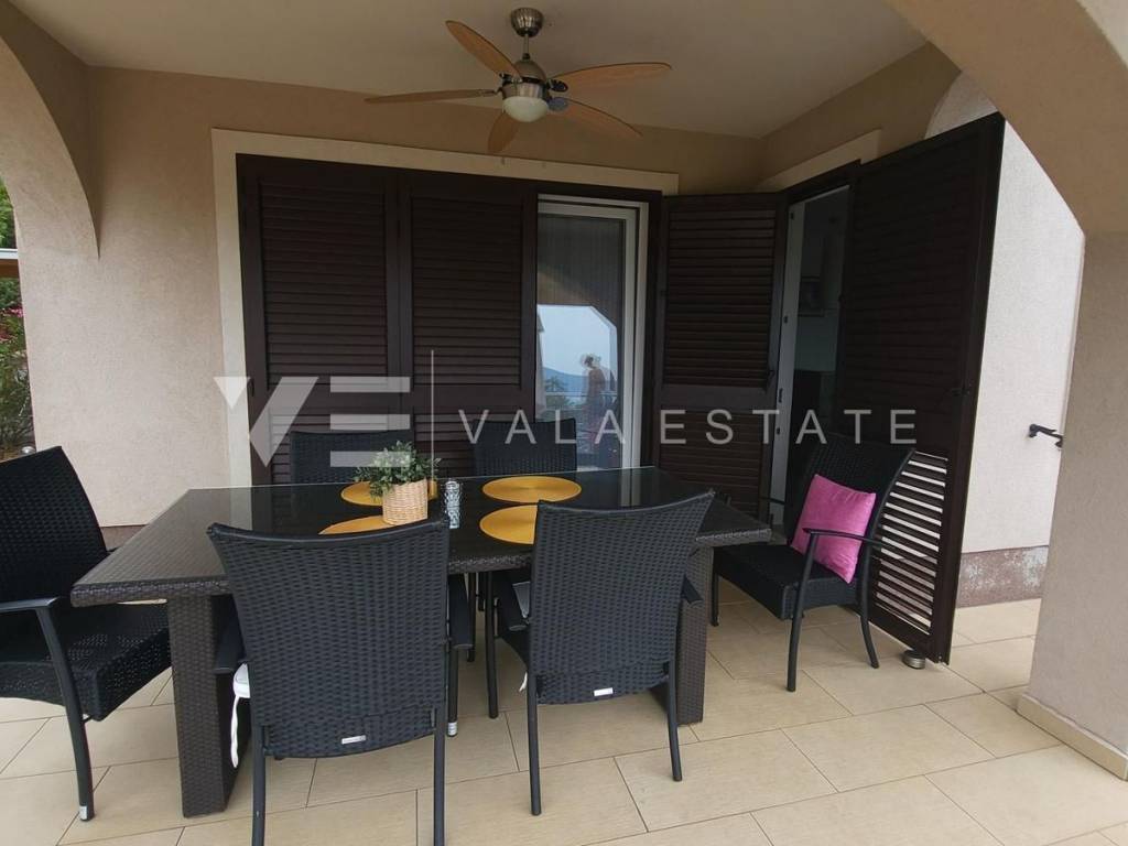 Nekretnine otok Krk, okolica grada Krka - na prodaju je prostrani dvosoban apartman u prizemlju više obiteljske kuće sa ukupno četiri stambene jedinice, smještene u blizini mora i lijepih plaža. Sastoji se od ulaznog hodnika, dvije spavaće sobe, ostave, kupaone i dnevnog boravka sa kuhinjom i blagovaonom sa izlazom na terasu i veliku uređenu okućnicu sa pogledom na more. Apartmanu pripada manja garaža i jedno parkirno mjesto na zajedničkom dvorištu kuće. Prodaje se kompletno namješten i odmah je spreman za useljenje. Kvalitetna gradnja i oprema, uredna dokumentacija, etažno vlasništvo. Nalazi se na mirnoj lokaciji na rubu zelene zone, udaljenoj svega 600 m od prekrasnih plaža. Agencija Vala Estate Malinska će Vam omogućiti siguran i transparentan prijenos vlasništva i sve potrebne dokumentacije. ID KOD AGENCIJE: a-881 VALA ESTATE d.o.o. Mob: +385 99 444 0550 Tel: +385 51 568 917 E-mail: info@vala-estate.com www.vala-estate.com