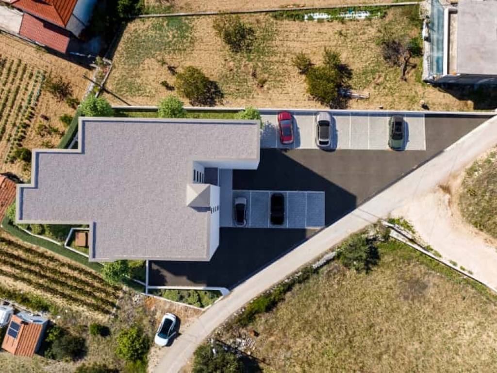 Predstavljamo ekskluzivni stambeni projekt smješten u Trogiru, predio Seget Donji – luksuznu zgradu s ukupno 14 modernih stambenih jedinica raspoređenih na četiri kata. Na svakom katu su tri stambene jedinice, a u prizemlju dvije te zajednički prostor za opuštanje i trening. Stanovima u prizemlju pripada, osim terase i vrt. Za svaku je stambenu jedinicu predviđeno po jedno parkirno mjesto.