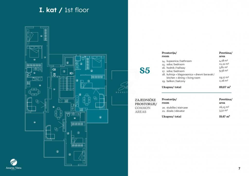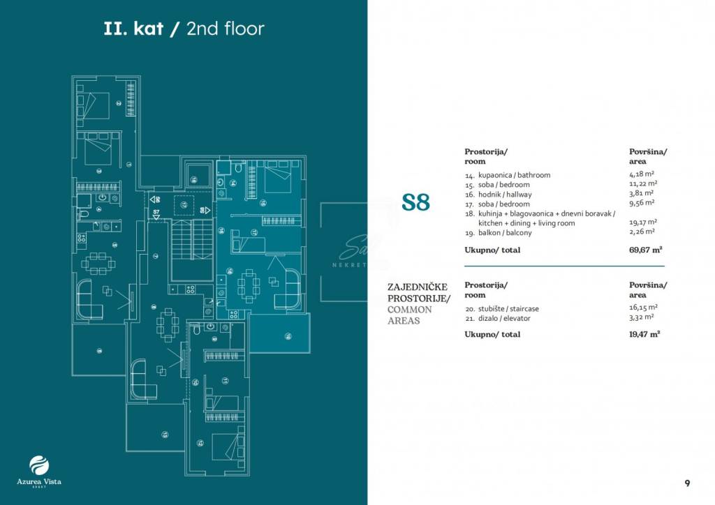 U objektu je predviđeno ukupno 14 stambenih jedinica, dvije u prizemlju te po tri stambene jedinice na preostale četiri etaže. Stanovima u prizemlju pripada i prostrani vrt i terase, dok ostali stanovi imaju balkone. Za svaku stambenu jedinicu predviđeno je po jedno vanjsko parkirno mjesto. Objekat će imati ugrađeno dizalo.