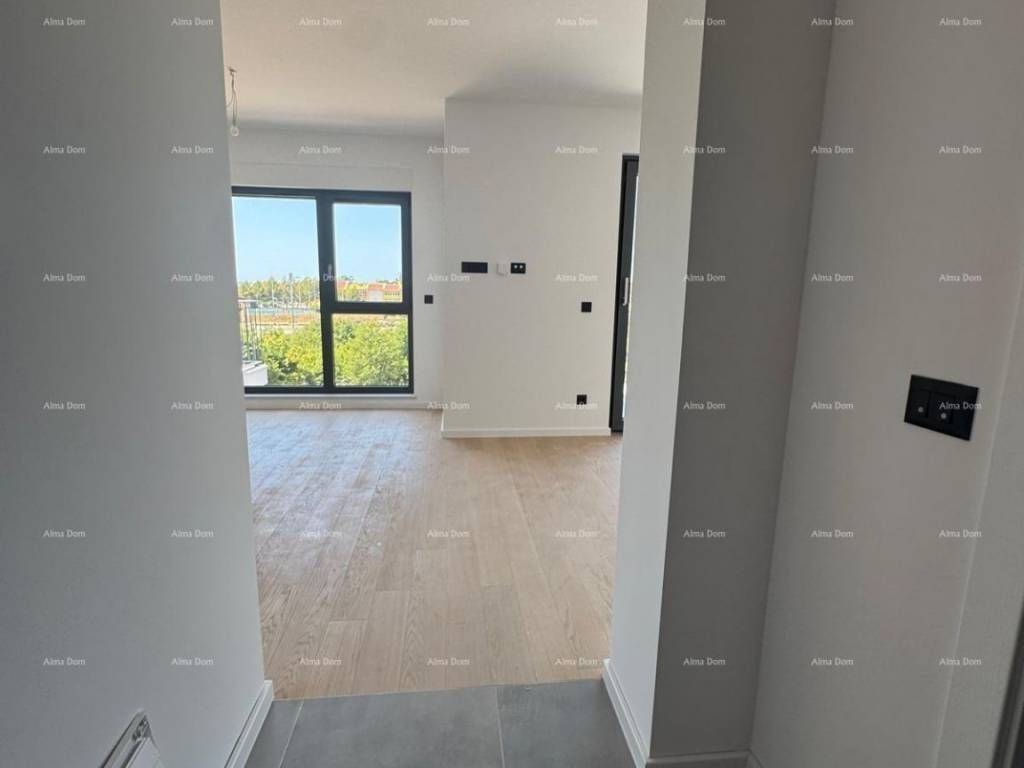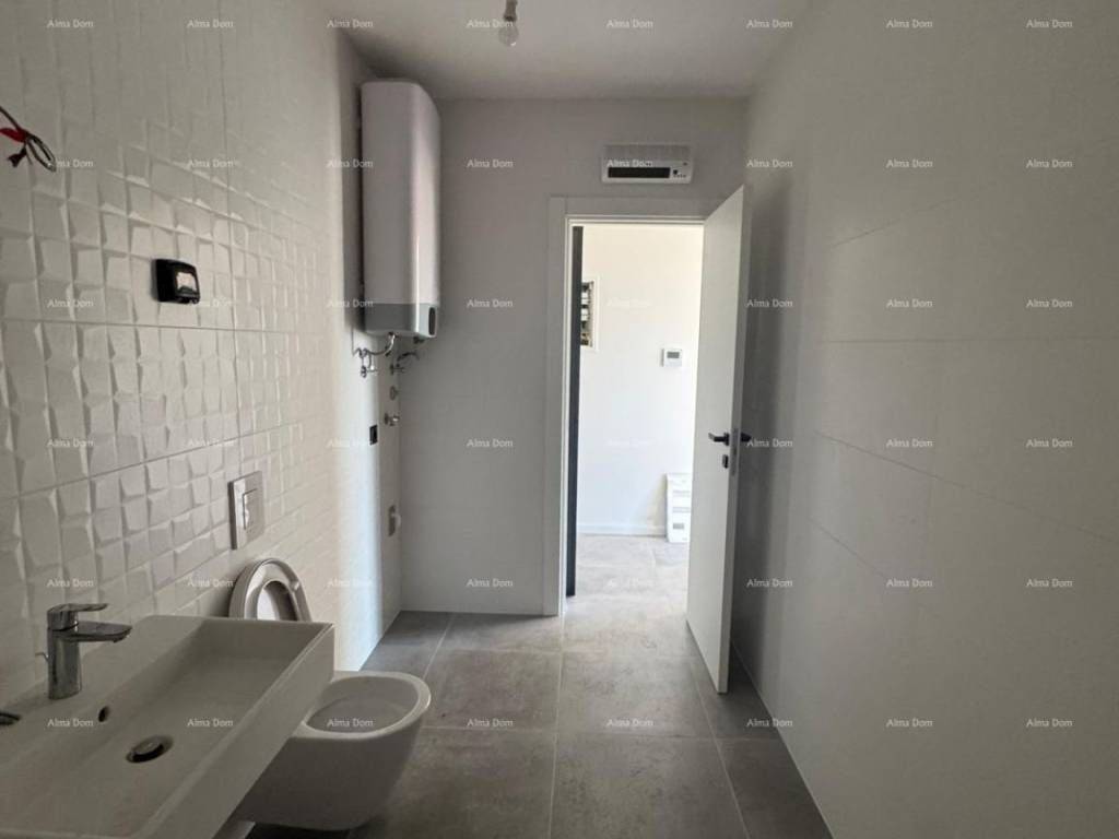 U samom gradu Umagu, u sklopu suvremenog stambenog projekta s 122 stana.Prodaje se stan na 1 katu zgrade, ukupne površine 73,08 m², s terasom, spremištem i parkirnim mjestom. Stan oznake 1-02 nalazi se na 1 katu zgrade i sastoji se od:Ulaznog prostora2 kupaonice2 spavaće sobeOtvorenog dnevnog boravka s kuhinjom i blagovaonicombalkona (8,18 m²).Uz stan dolazi i:Spremište (2,94 m²)Garažno i vanjsko parkirno mjesto.Tehničke karakteristike:Armirano-betonska konstrukcijaTermoizolacijska fasada (ETICS, 10 cm)Visokokvalitetna PVC stolarija, podizno-klizne stijeneElektrične rolete u sobamaMultisplit klimatizacija u svim prostorijamaPrvoklasna keramika i parketVlastito brojilo struje i vodeVideo parlafon, internet i TV priključakZgrada sadrži:74 garažna mjesta, 82 vanjska i 25 natkrivenih parkirnih mjestaUkupno 105 spremištaLift i stubišta iz 4 glavna ulazaPodrumska etaža s garažama i komunikacijomStanovi od 1. do 3. kata.Lokacija:100–500 m od vrtića, škole, dućana, sportskih sadržaja i centra700 m do mora, šetnice i gradske plaže.Završetak radova planiran je krajem 2025. godine.Za više informacija stojimo vam na raspolaganju:Azra +385 91 611 5706 +385 98 420 885 azra@almadominvest.com