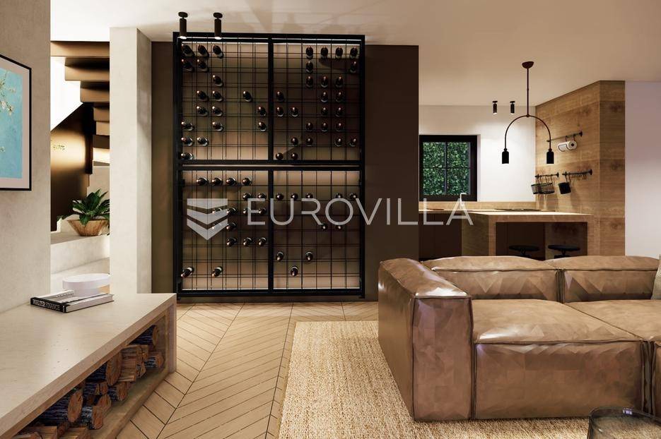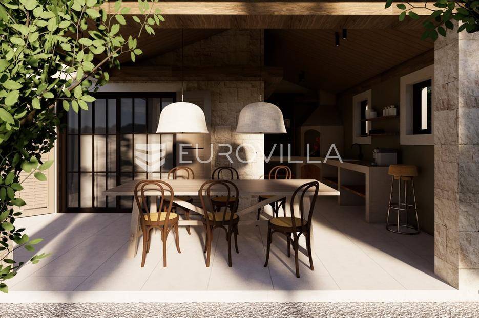 U našoj ponudi nudimo fenomenalnu vilu u manjem turističkom naselju Krnica, radi se o nekretnini koja se prostire na dvije etaže ukupne stambene površine od 150,73 m2 je smještena na prostranoj okućnici od 1116 m2.Prizemlje vile se sastoji od ulaznog hodnika, spavaće sobe sa svojim kupatilom, spremišta, wc-a, prostranog dnevnog boravka s kuhinjom i blagovaonom po open space konceptu, terase i vanjske ljetne kuhinje.Na katu se smjestio ulazni hodnik, dvije spavaće sobe svaka sa svojim kupatilom te velika terasa s koje se pruža panoramski pogled na more.Već spomenutu okućnicu od 1116 m2 krasi zelenilo koje okružuje nekretninu te vanjski bazen dimenzija 8 x 4 sa sunčalištem.Nekretnina se prodaje kompletno opremljena vrhunski planiranom izvedbom interijera kao što možete vidjeti na slikama. Podno grijanje bit će sprovedeno kroz čitavu kuću, grijanje će se odvijati pomoći dizalice topline te hlađenje sustavom klima uređaja u svim prostorijama za maksimalnu udobnost.Ova vila nudi sve što je potrebno za bezbrižan i nezaboravan odmor u mirnom mediteranskom okruženju, uz blizinu mora i svih sadržaja potrebnih za savršen boravak.Za sve dodatne informacije stojimo na raspolaganju.