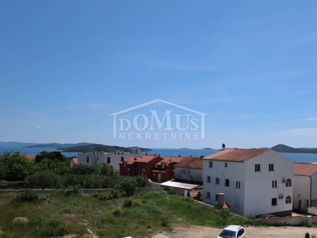 Vodice, novogradnja višestambena zgrada sa 10 stambenih jedinica, zgrada s panoramskim pogledom na grad i more, opremljena s liftom / dizalom i spremištima. Zgrada ima ukupno četiri etaže: suteren + prizemlje + 1.kat + 2.kat. Zgrada je modernog izgleda, bit će opremljena s visokokvalitetnim podnim oblogama i unutarnjom i vanjskom stolarijom, klima uređaj za grijanje i hlađenje u svakoj prostoriji, el. podizači roleta, lift / dizalo. Terase svih stambenih jedinica imat će pogled na more. Svaka stambena jedinica ima svoje komforno parkirno mjesto unutar dvorišta zgrade te jedno spremište u suterenu zgrade. Zgrada se nalazi samo 840m od Plave plaže, a od centra i svih bitnijih sadržaja 750m. Predviđeni termin useljenja je 2026.g.