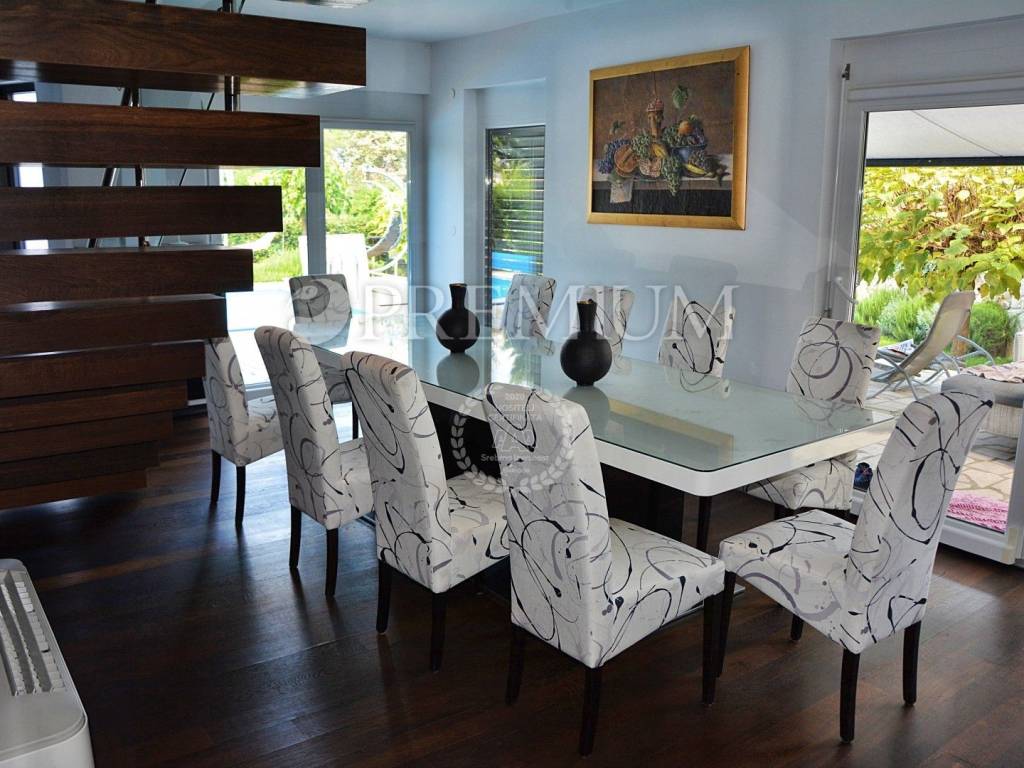 Na prodaju luksuzno opremljena dvojna kuća samo 90 m od mora, u mirnom okruženju. Kuća se sastoji prizemlja, kata i potkrovlja. U prizemlju su kuhinja, blagovaonica, dnevni boravak, spavaća soba s kupaonicom i zasebnim ulazom i kupaonom, na katu su 4 spavaće sobe, svaka sa svojim izlazom na terasu i pogledom na more, u potkrovlju je prekrasna terasa od 24 m² s panoramskim pogledom.